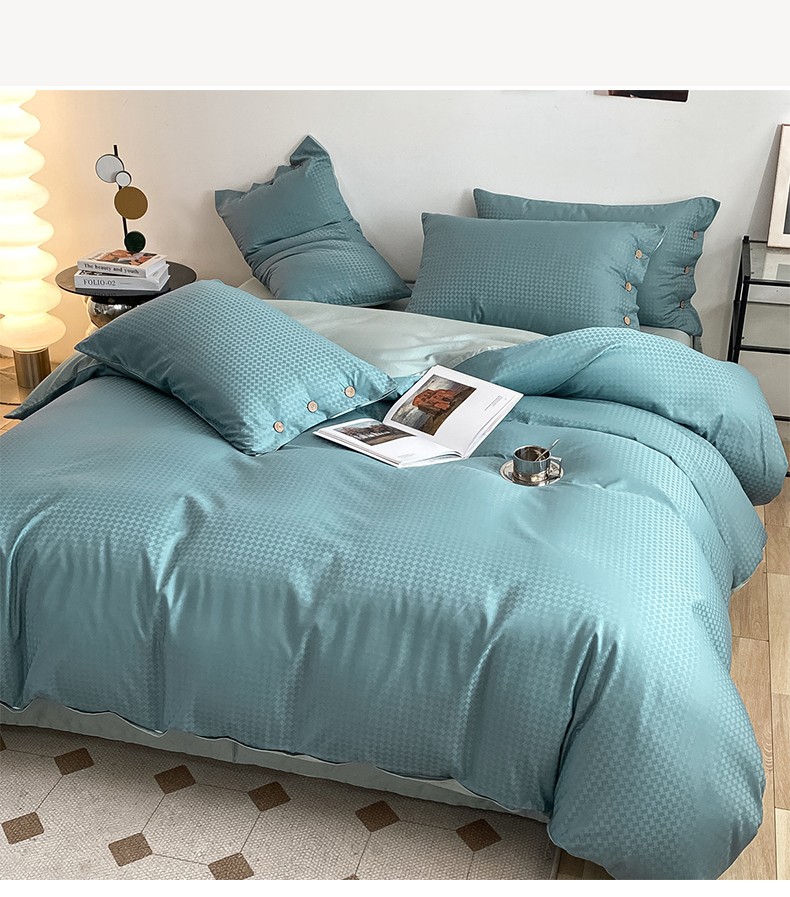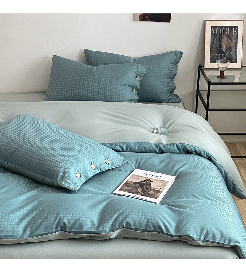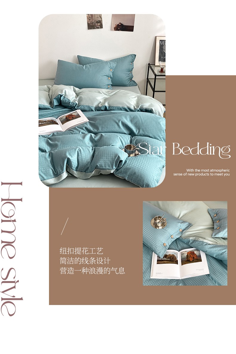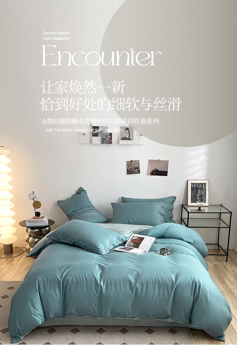 当前位置: 91家纺网 > 商品网购 > 床品套件 > 四件套 > 提花四件套 > 古吉梦 2023新款A类抗菌防螨水洗真丝纽扣提花四件套 纽扣提花-浅石兰+梵星蓝