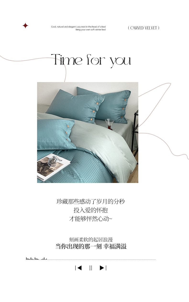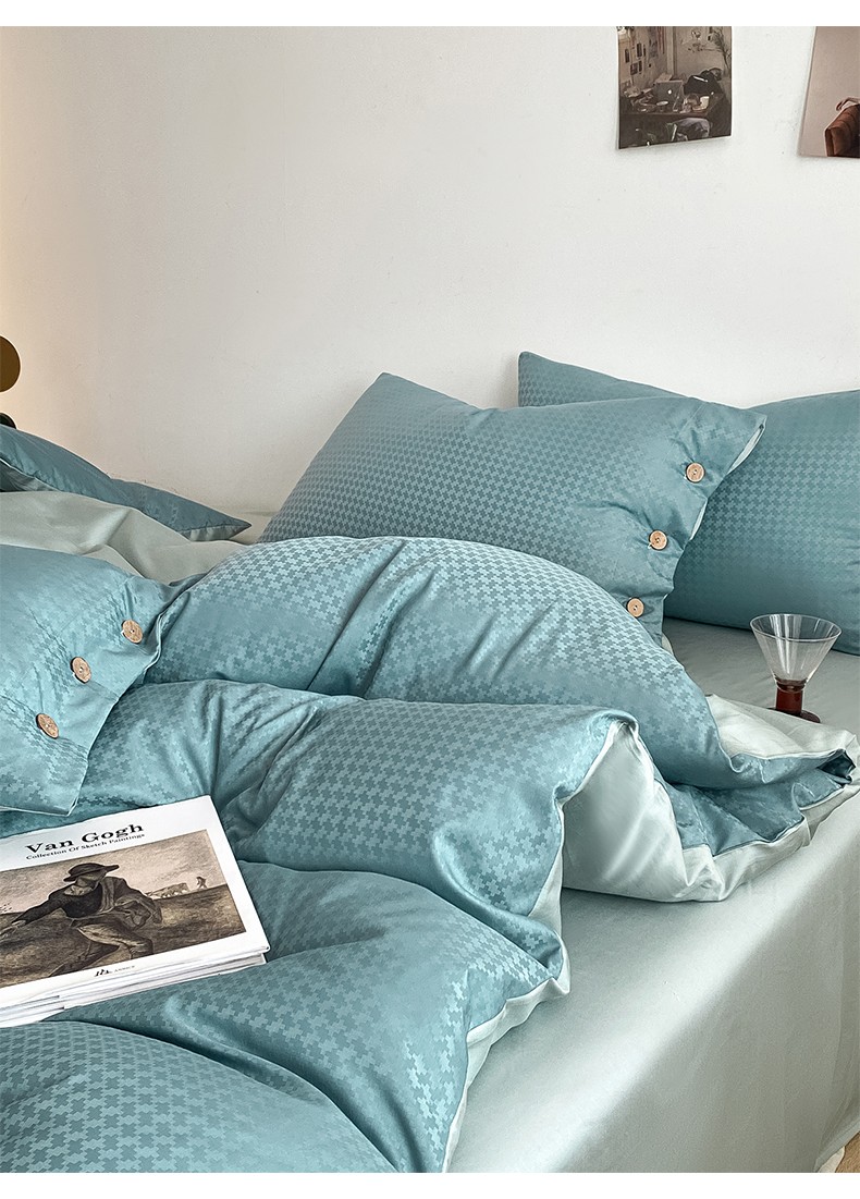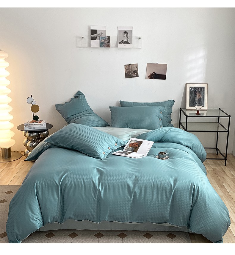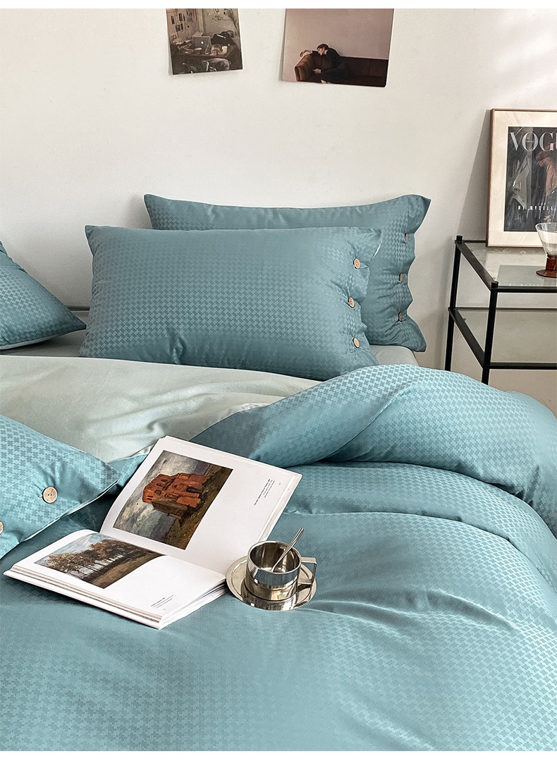 当前位置: 91家纺网 > 商品网购 > 床品套件 > 四件套 > 提花四件套 > 古吉梦 2023新款A类抗菌防螨水洗真丝纽扣提花四件套 纽扣提花-浅石兰+梵星蓝