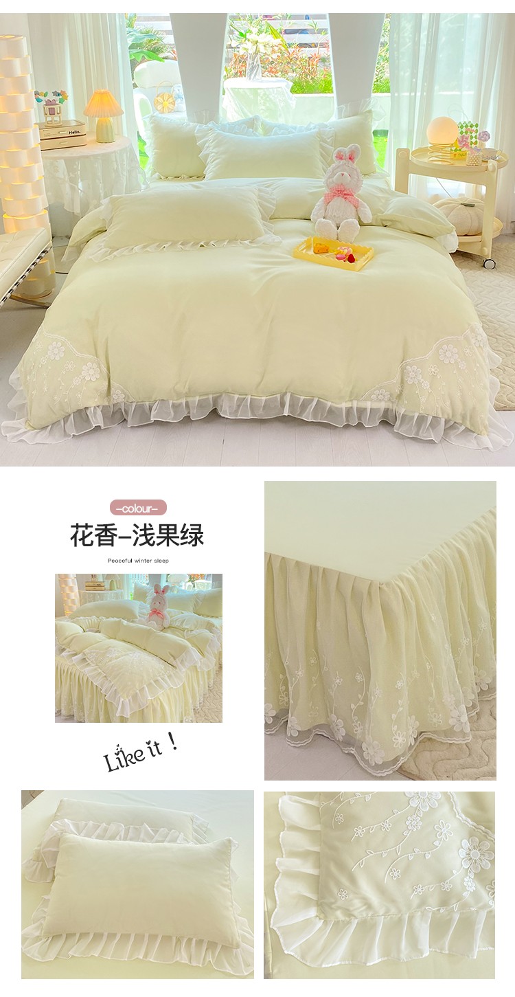唐人居 2025新款水洗棉麻花边款花香系列四件套 花香-浅果绿
