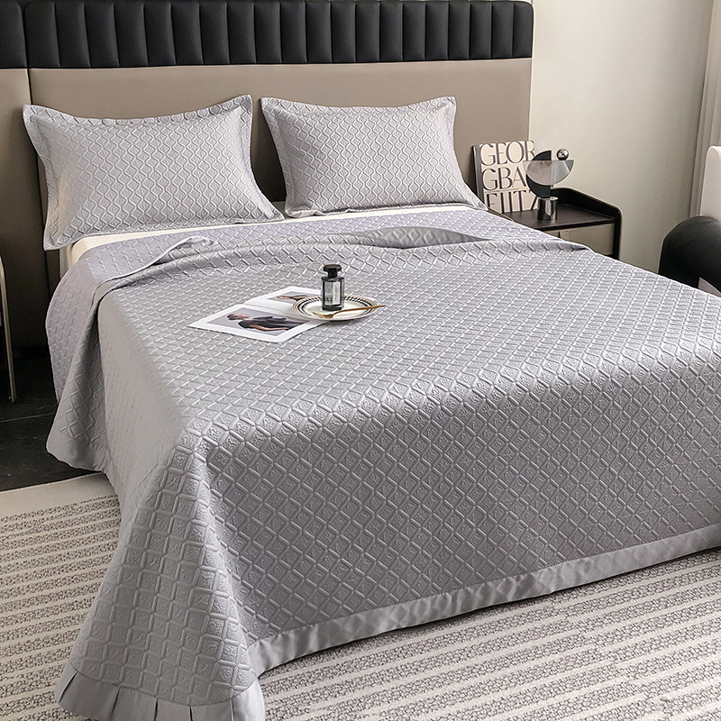 (总)淼铭家纺 2025新款莱赛尔纯色绗缝床盖三件套