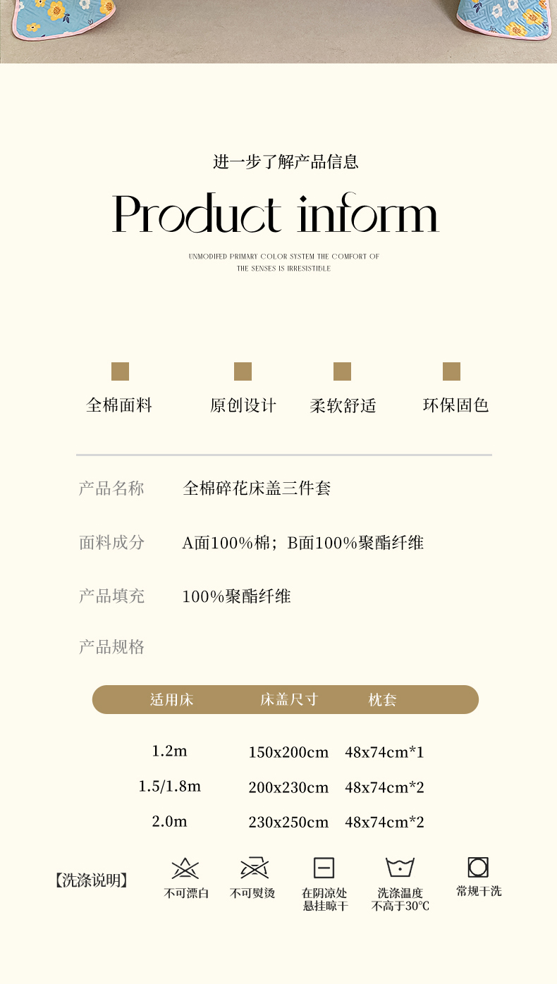 商品名称:(总)凡客 2023新款全棉印花床盖三件套学生宿舍