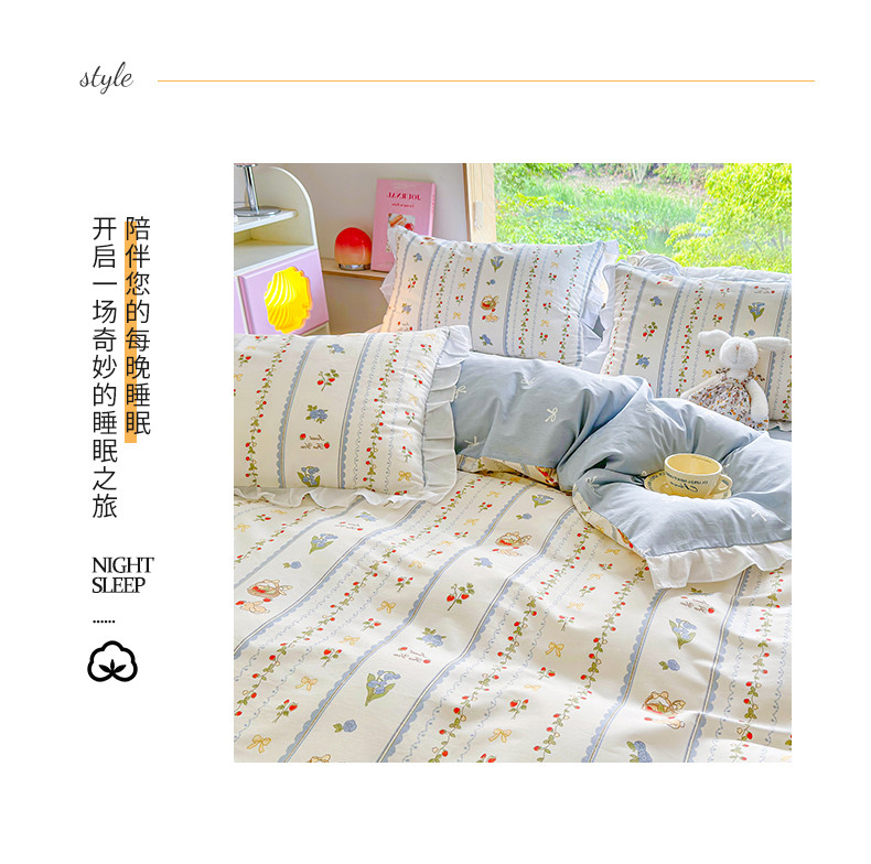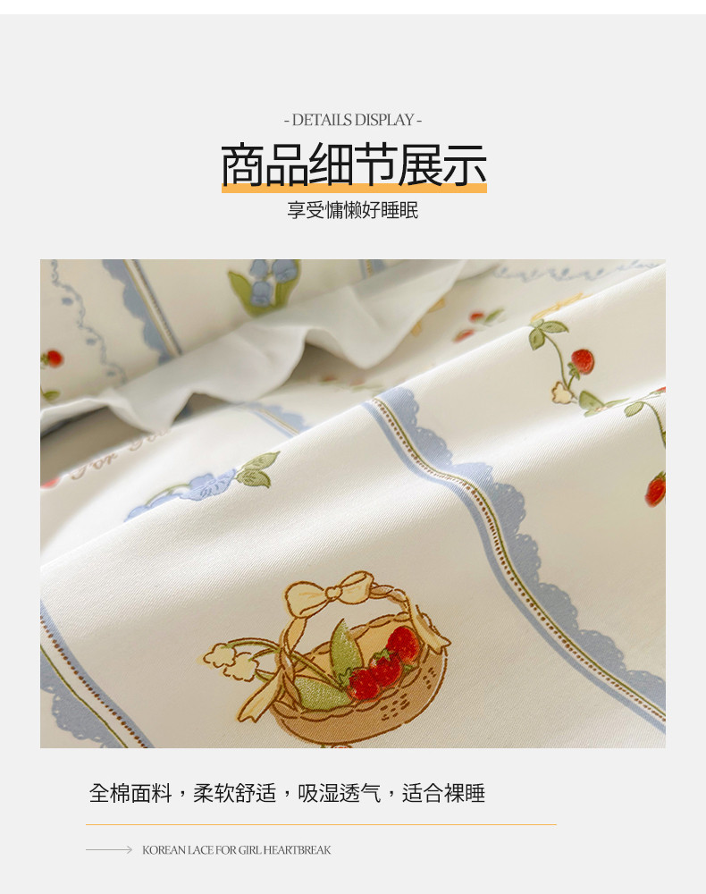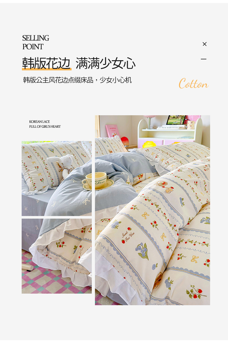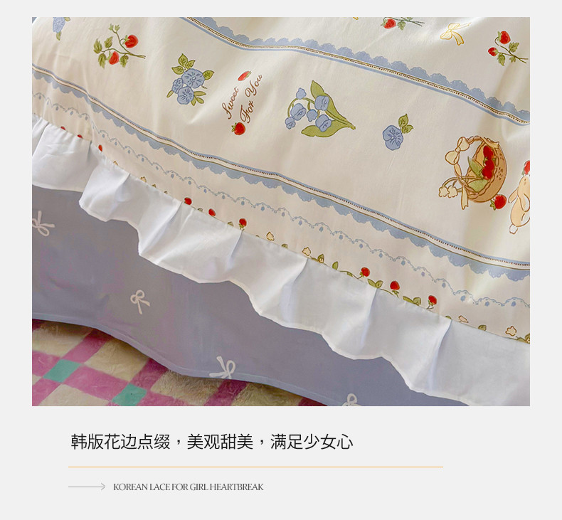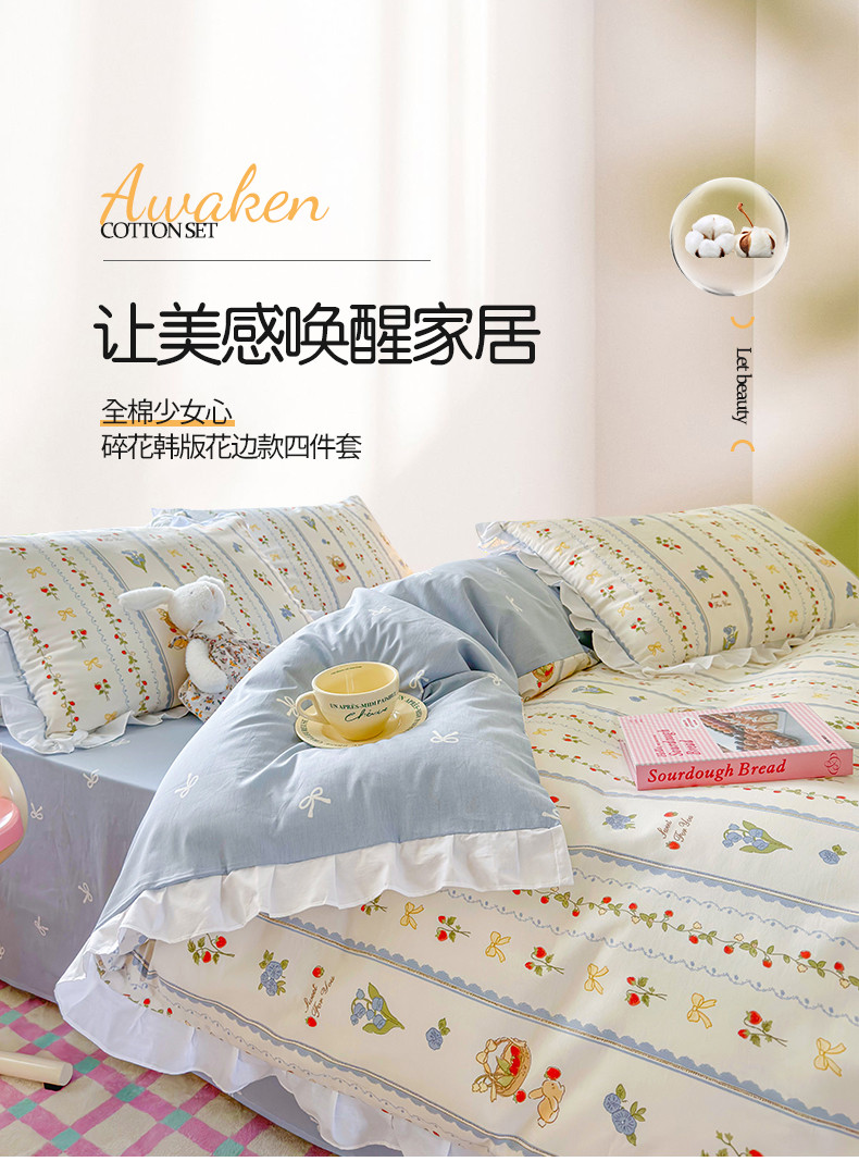 商品名称:桃子 2023新款仙气奶油碎花少女心韩版花边纯棉四件套 花边-浅梦