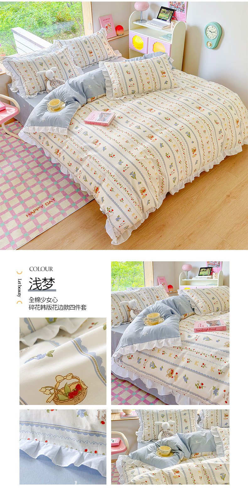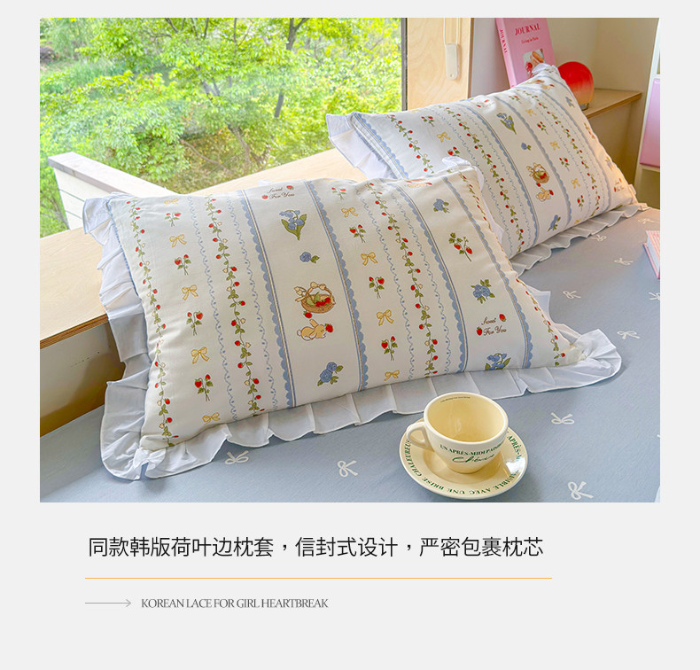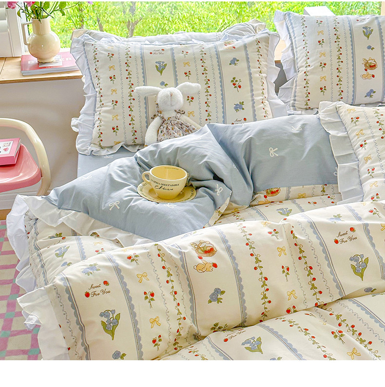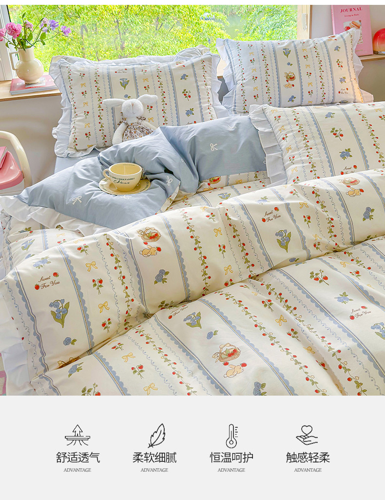商品名称:桃子 2023新款仙气奶油碎花少女心韩版花边纯棉四件套 花边-浅梦