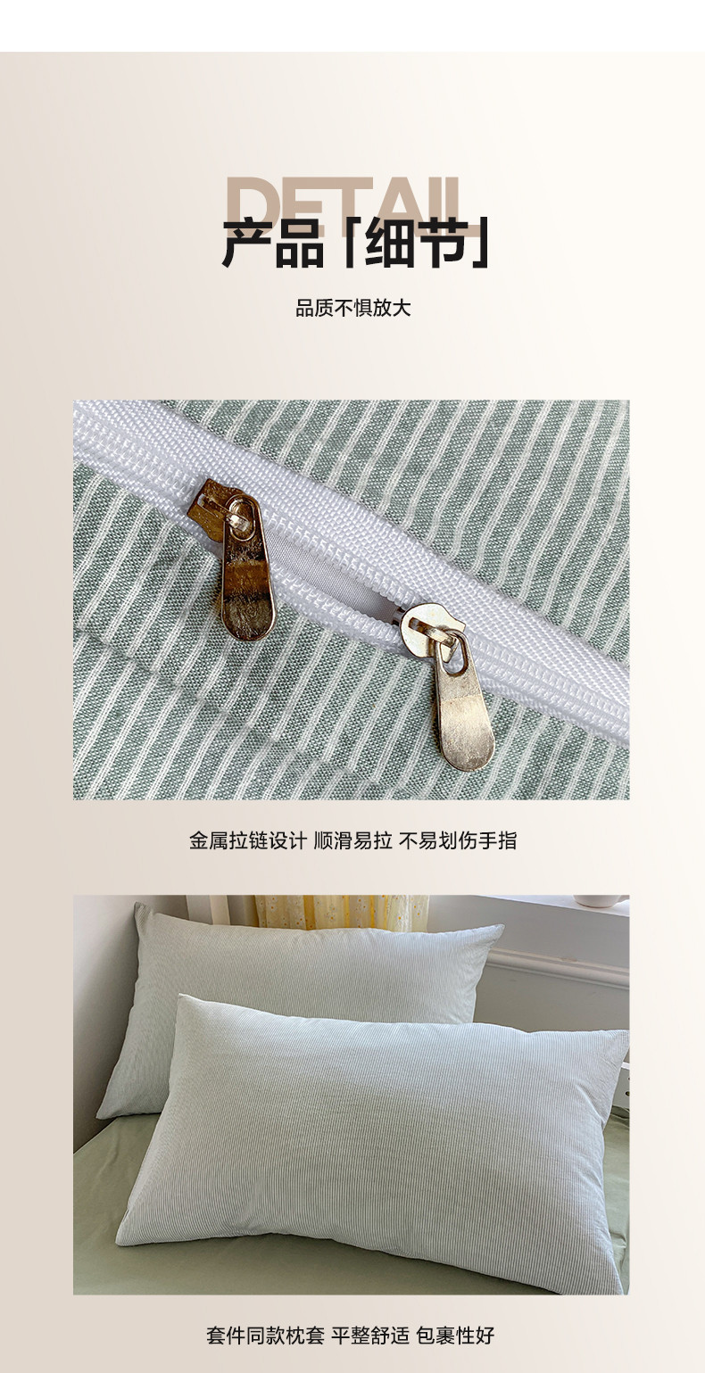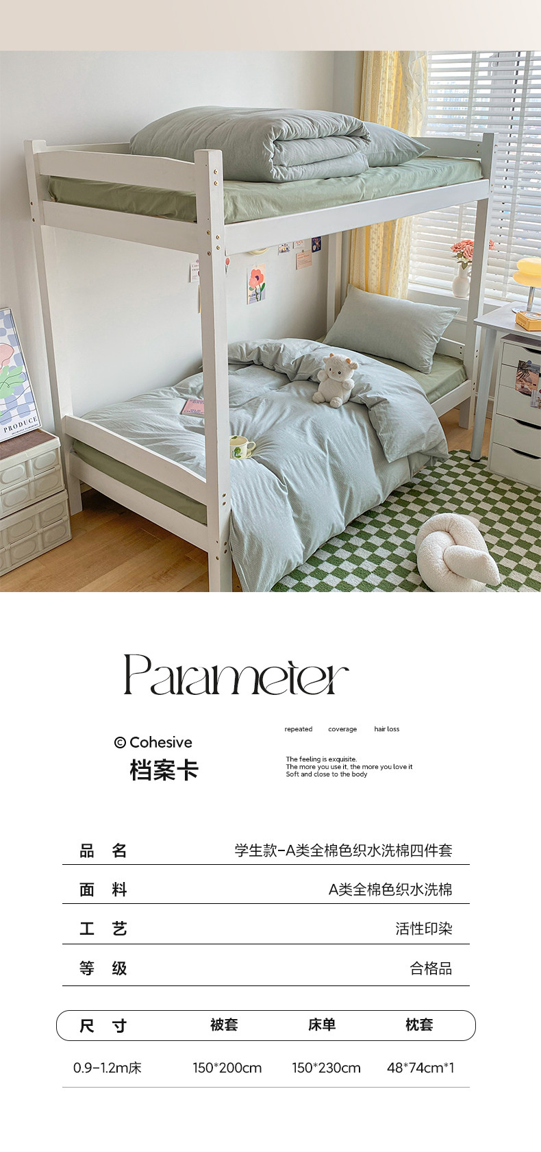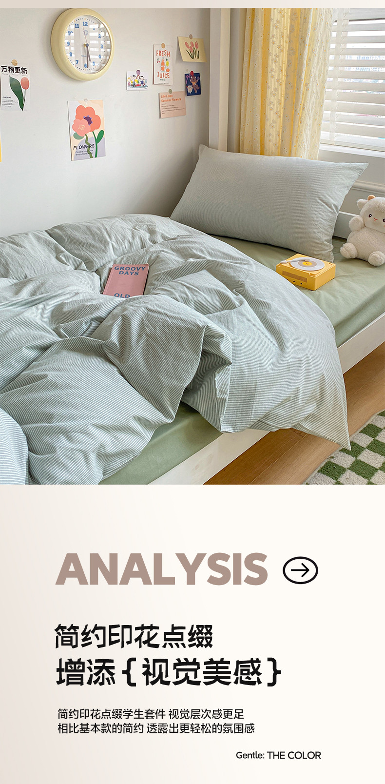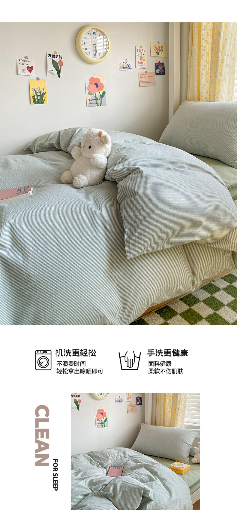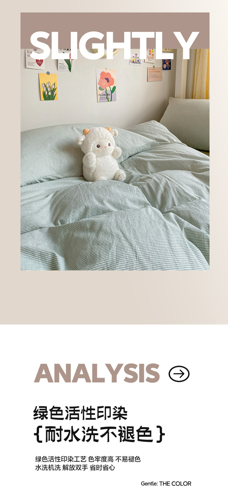 商品名称:莱茵家居 2024新款色织全棉水洗棉学生床三件套 条小绿