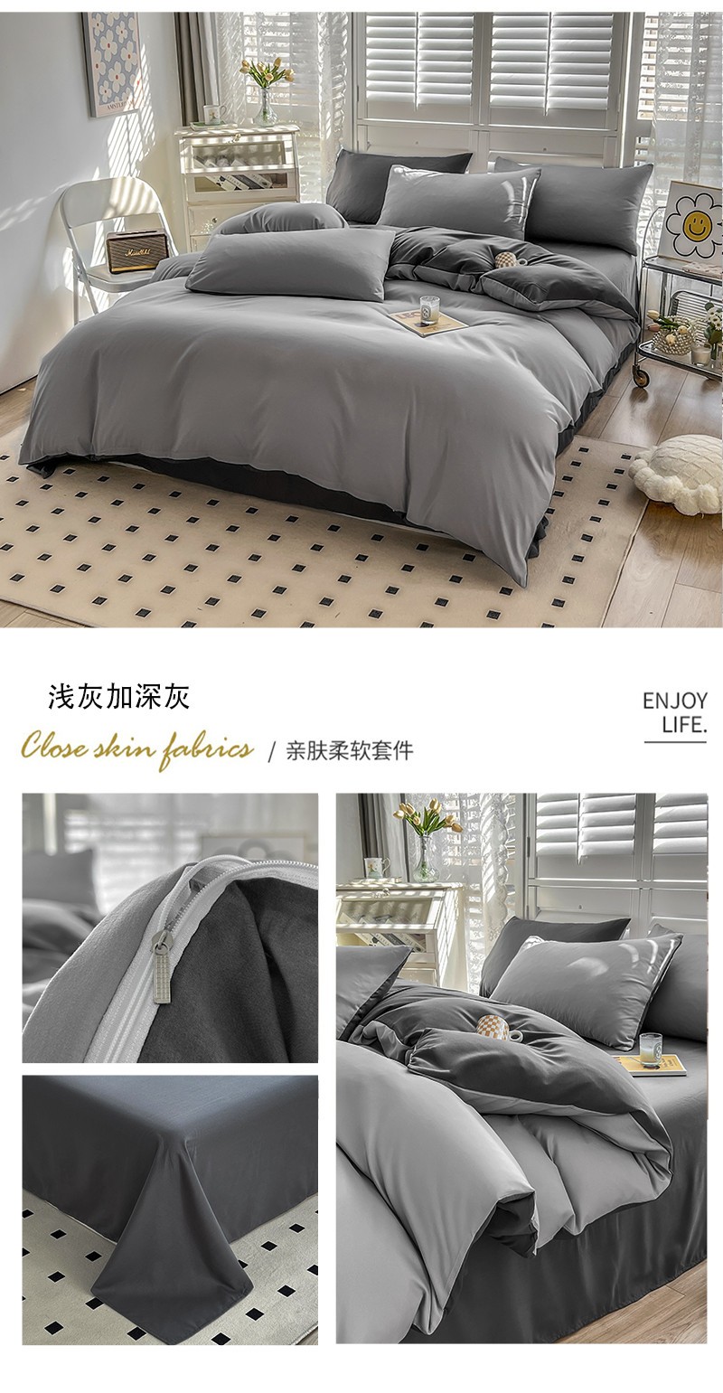当前位置: 91家纺网 > 商品网购 > 床品套件 > 四件套 > 普通磨毛四件套 > 安力森/诚臻酒店用品 2023新款双拼磨毛被套床单枕套床笠单品三件套四件套 浅灰加深灰