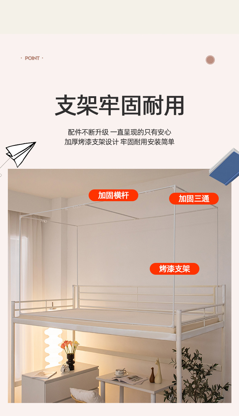 (总)千逸虹 2024新款简约纯色上下铺学生蚊帐