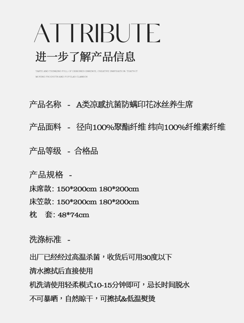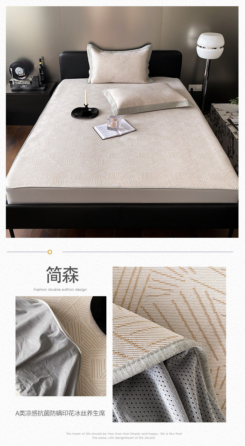 当前位置: 91家纺网 > 商品网购 > 床上用品 > 凉席 > 冰丝席 > 三味舒屋 2025新款抗菌防螨凉感提花冰丝养生席床笠款 简森
