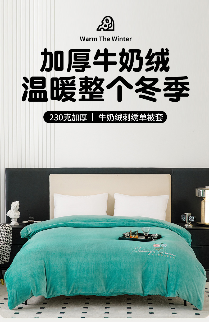 当前位置: 91家纺网 > 商品网购 > 床品套件 > 四件套 > 牛奶绒四件套 > 新款230克肌理纹绣花牛奶绒单被套可定做定制 肌理纹绣花-绿色