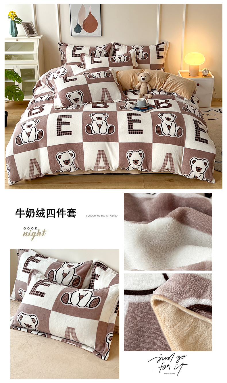商品名称:富之航家纺 2023新款牛奶绒印花四件套 小熊公仔