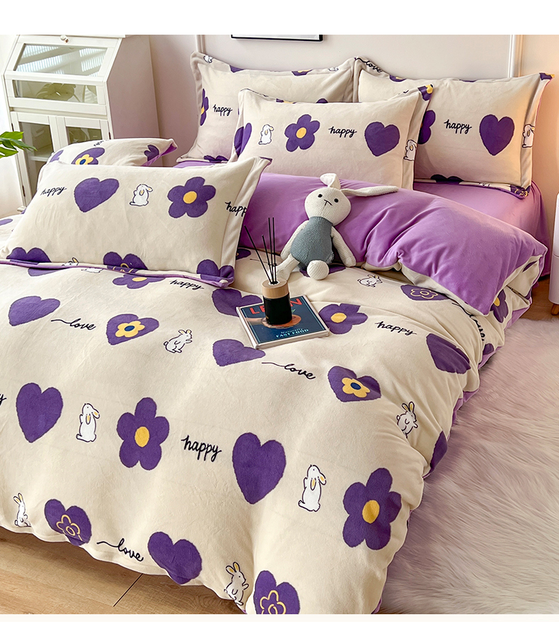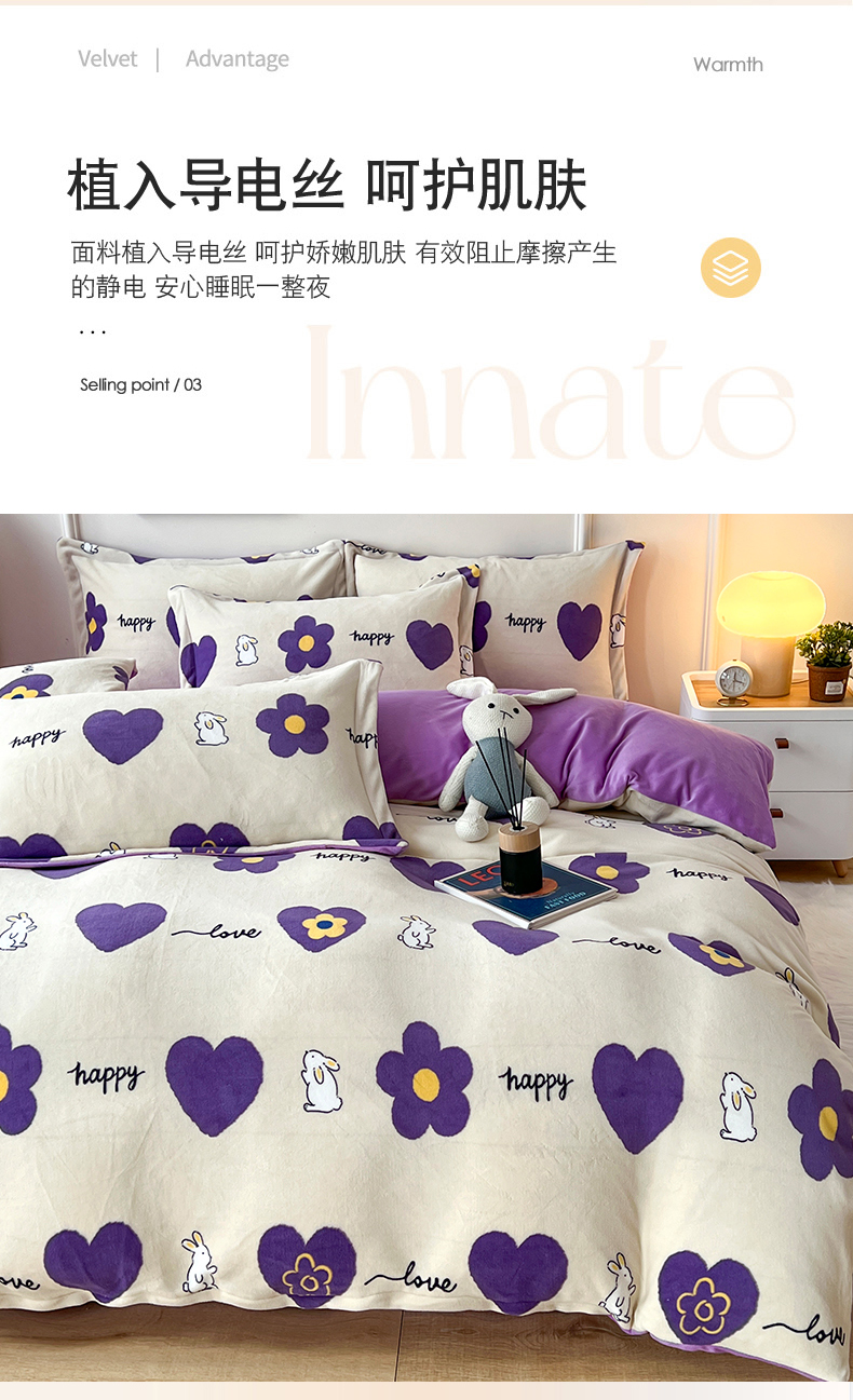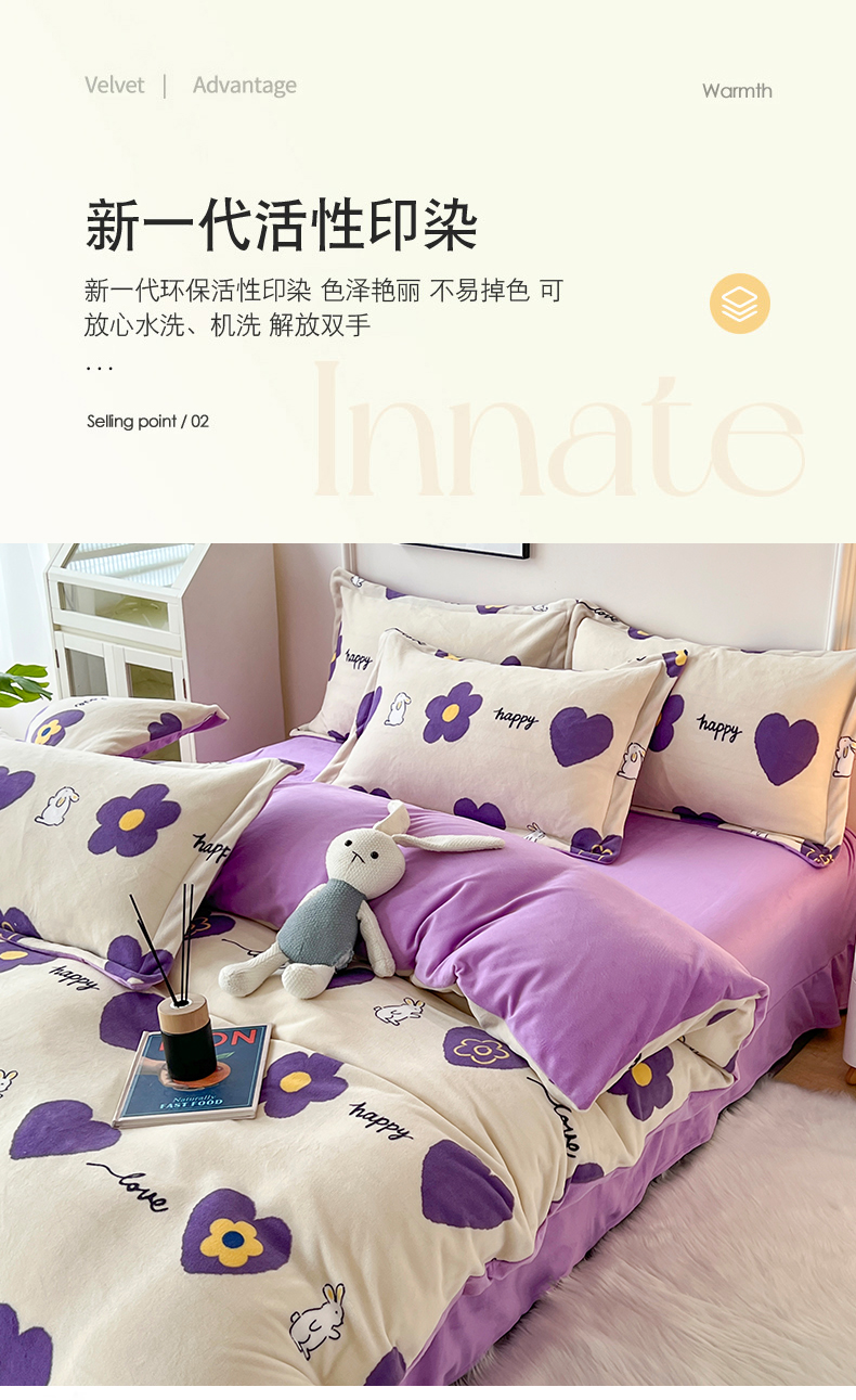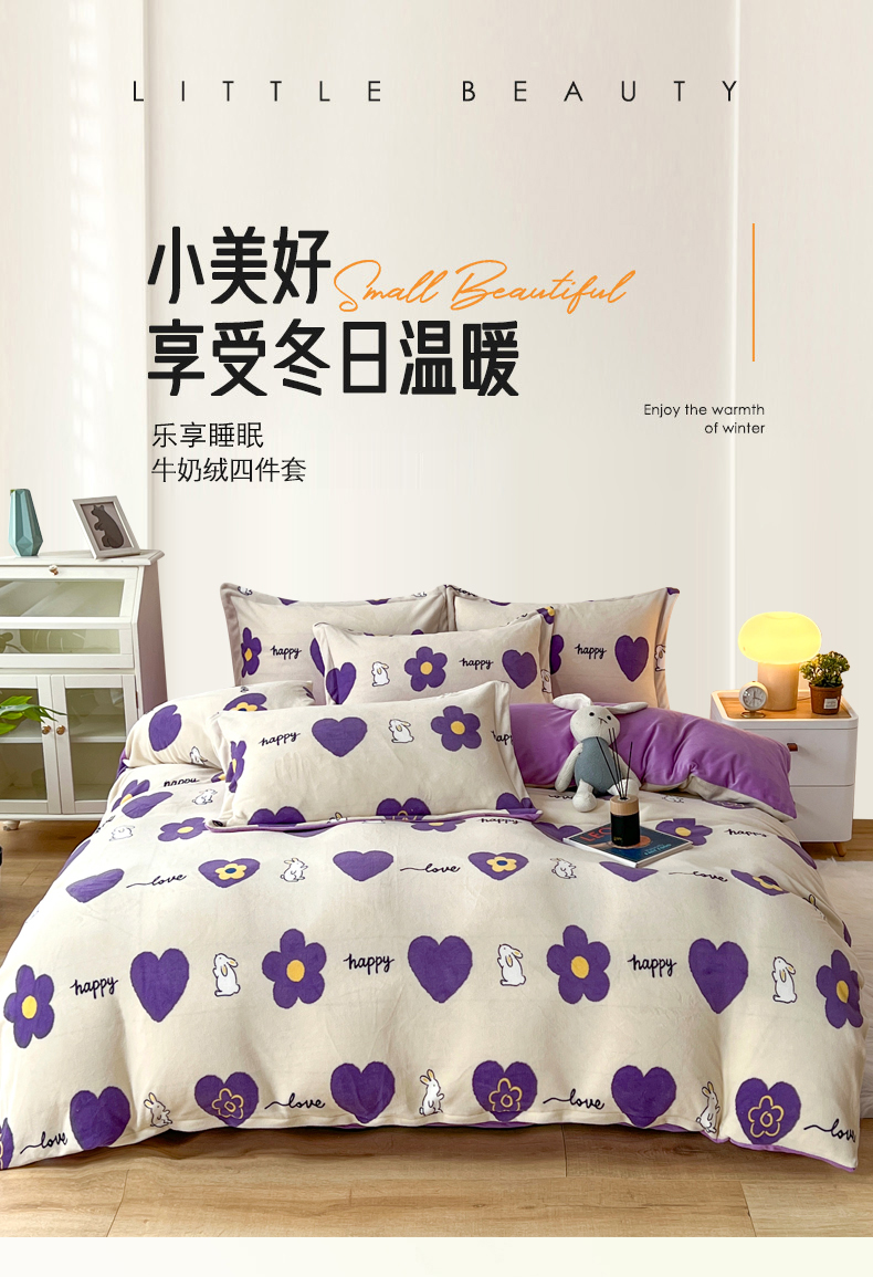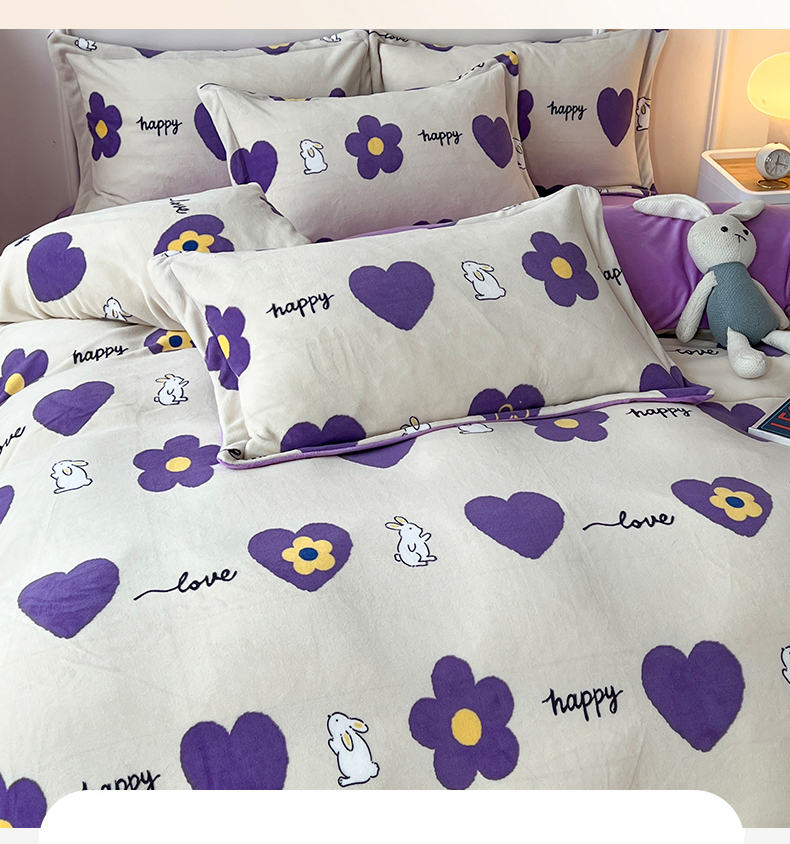 富之航家纺 2023新款牛奶绒印花四件套 萌萌兔