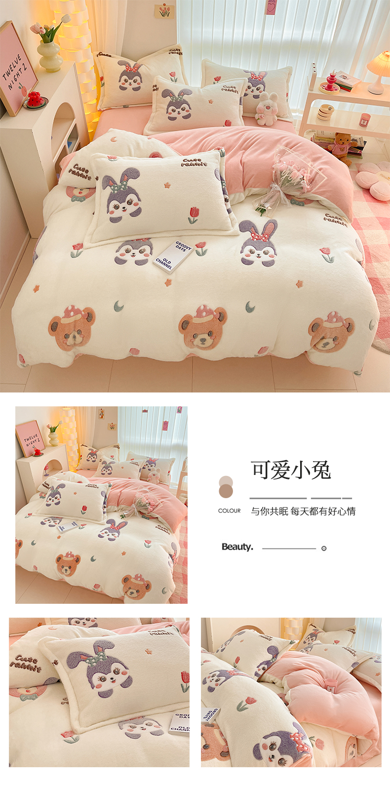 当前位置: 91家纺网 > 商品网购 > 床品套件 > 四件套 > 牛奶绒四件套 > 同田家纺 2024秋冬新品雪花绒牛奶绒印花四件套 可爱小兔