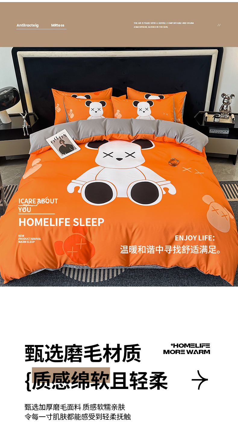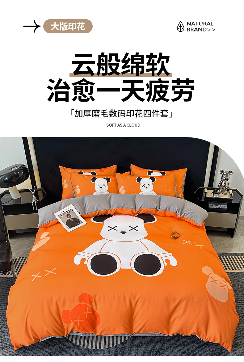 当前位置: 91家纺网 > 商品网购 > 床品套件 > 四件套 > 普通磨毛四件套 > 色鬼布艺 2023新款加厚双面磨毛数码大版印花四件套 暖橙