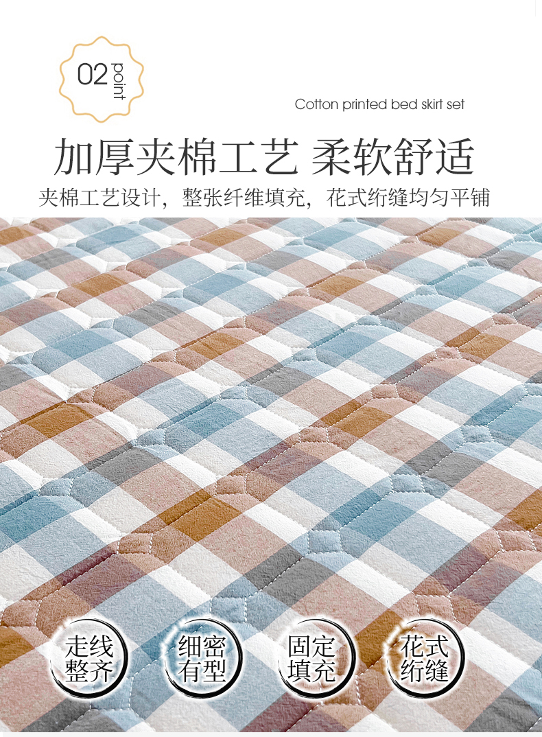 (总)十个点家纺 2025新款千鸟格磨毛绗缝夹棉纯色花边床裙三件套,经典白色,经典兰色,经典浅灰,经典浅驼,经典深灰,经典玉粉