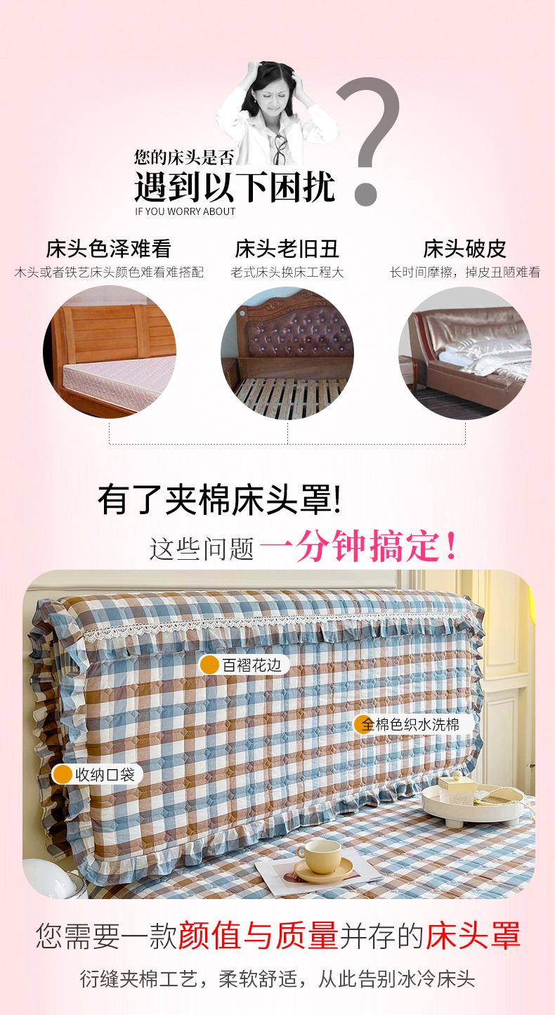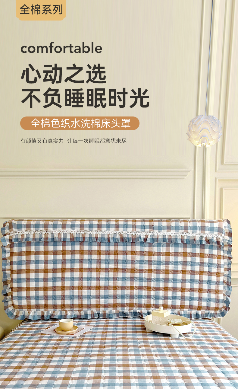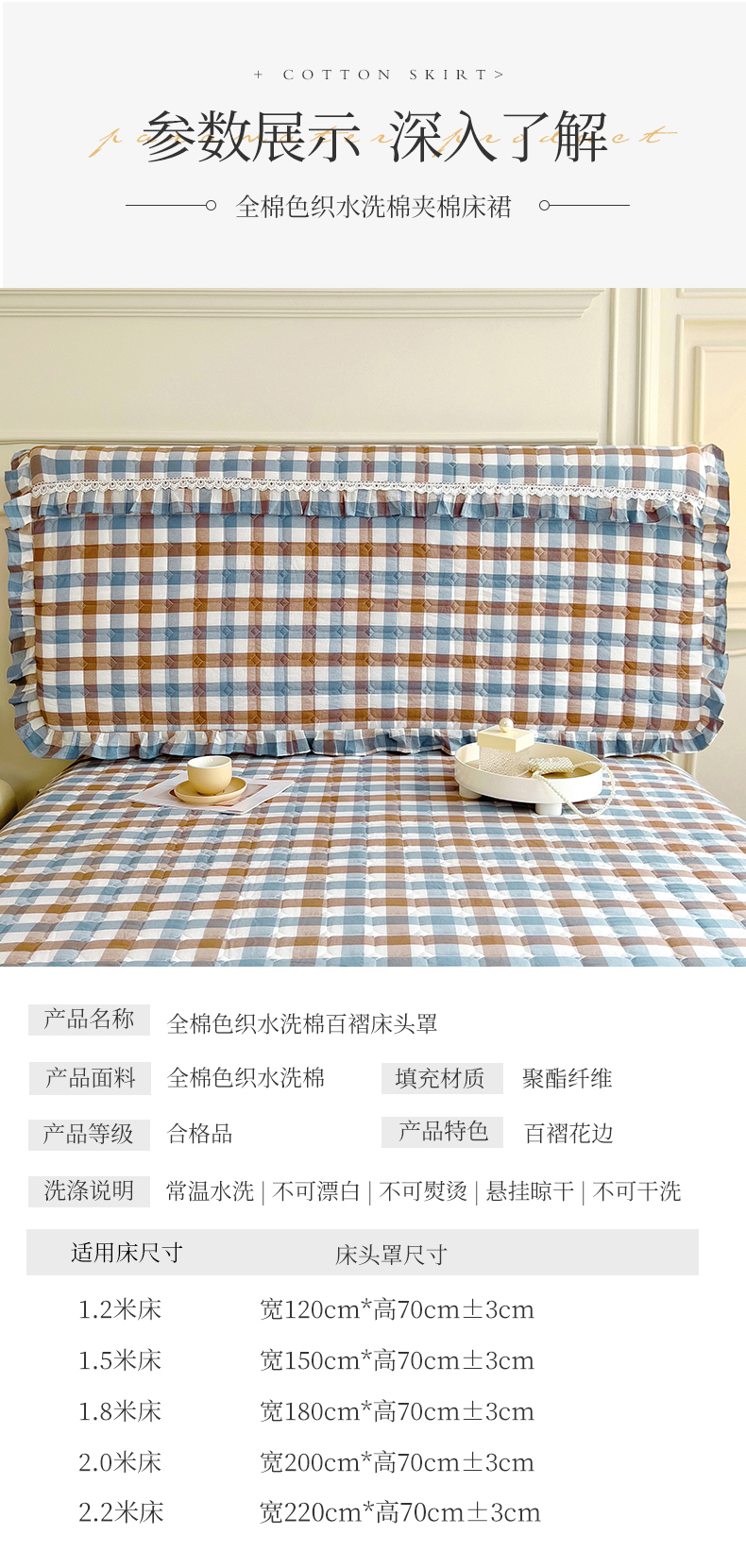 (总)十个点家纺 2025新款千鸟格磨毛绗缝夹棉纯色花边床头罩,经典白色,经典兰色,经典浅灰,经典浅驼,经典深灰,经典玉粉