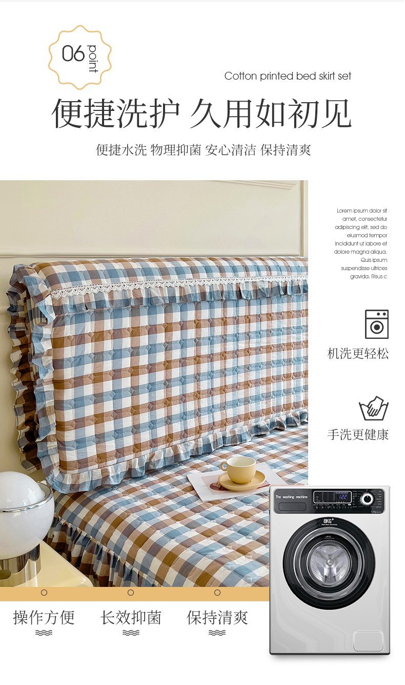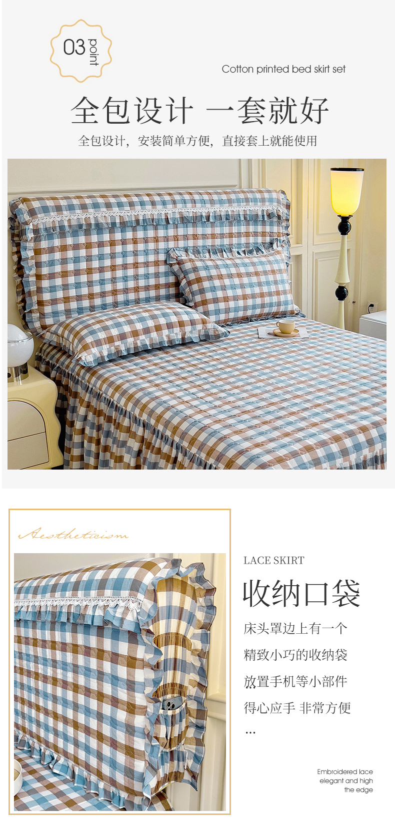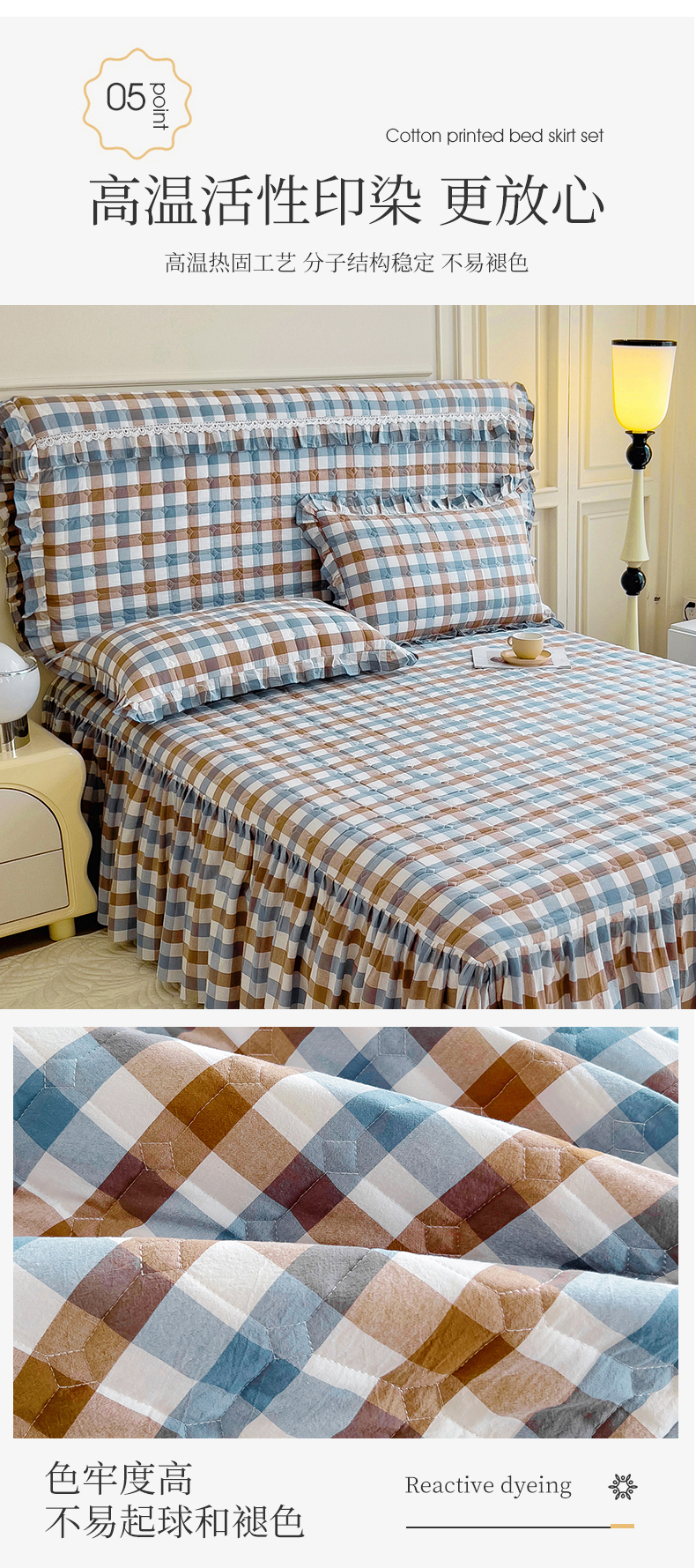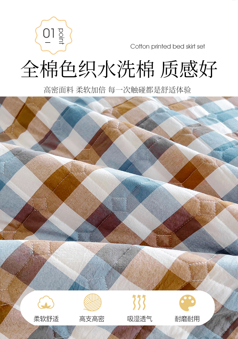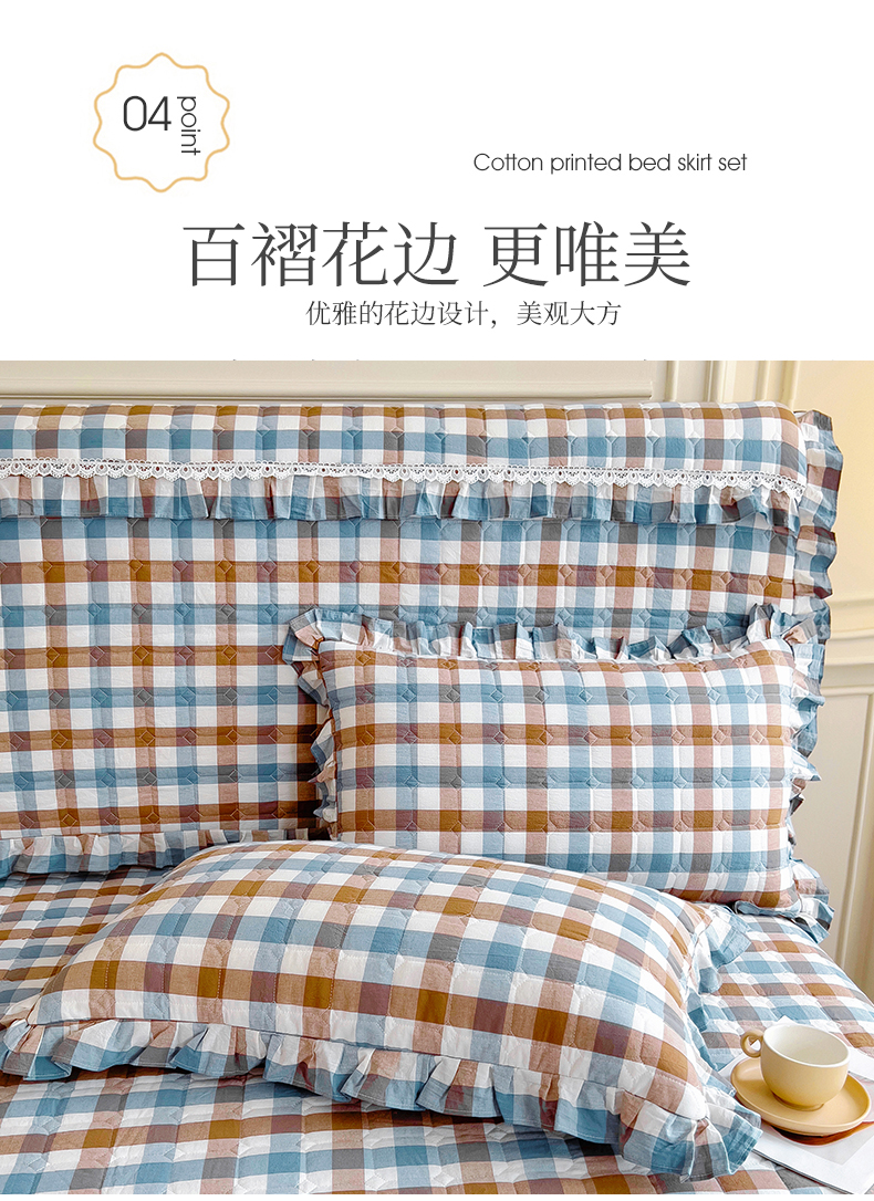 (总)十个点家纺 2025新款加厚磨毛木棉床裙三件套-格小格系列,格小格-粉,格小格-金驼,格小格-咖,格小格-兰,格小格-绿,格小格-玉