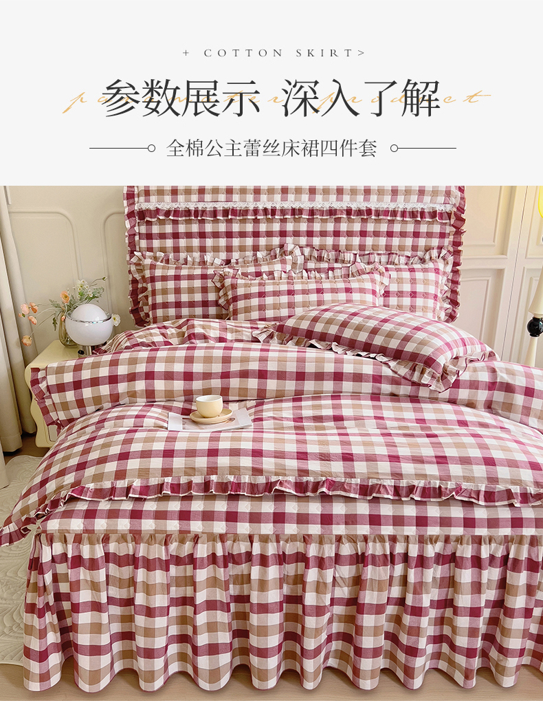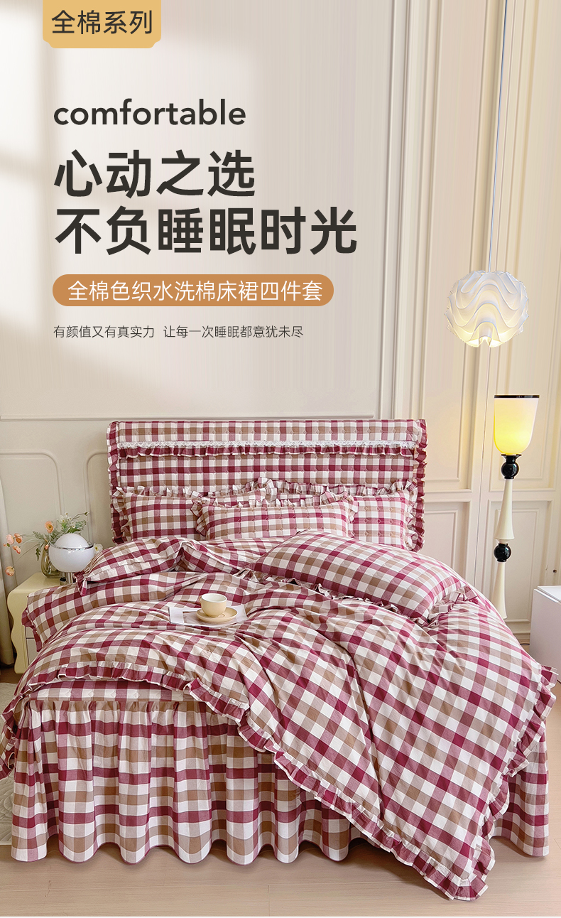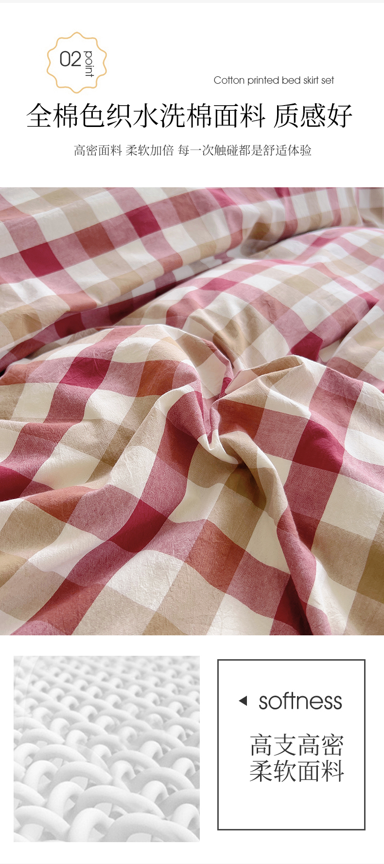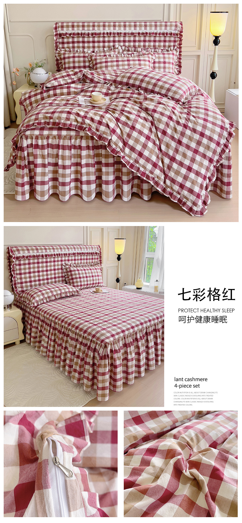 当前位置: 91家纺网 > 商品网购 > 床品套件 > 四件套 > 水洗棉四件套 > 十个点 2024新款色织水洗棉韵格系列床裙款四件套 七彩格红