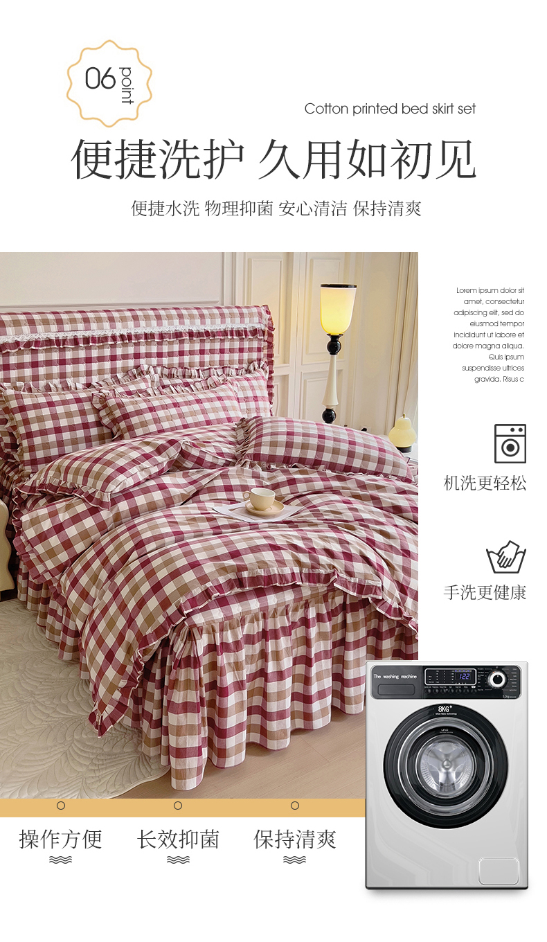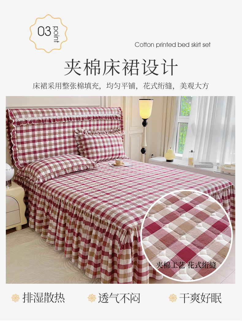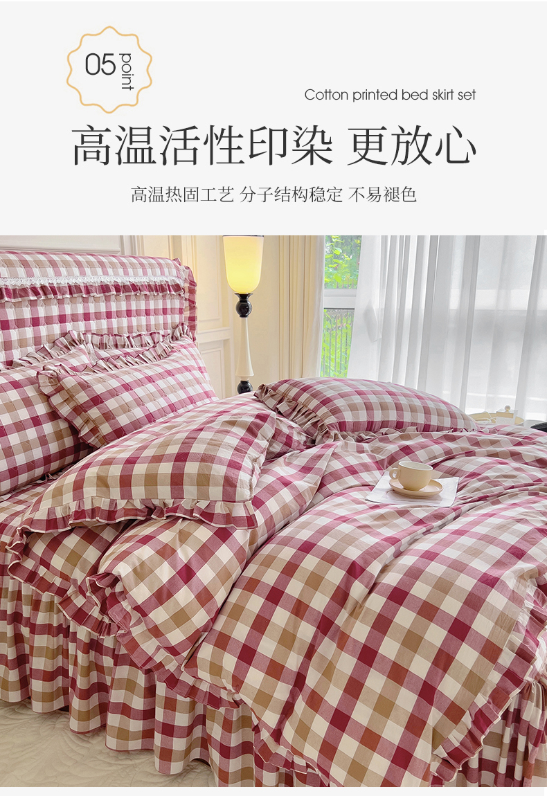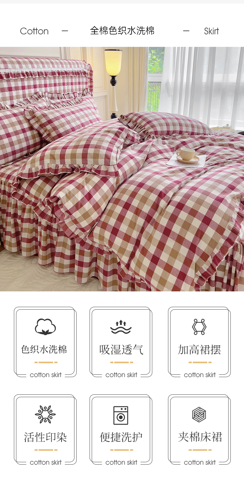 当前位置: 91家纺网 > 商品网购 > 床品套件 > 四件套 > 水洗棉四件套 > 十个点 2024新款色织水洗棉韵格系列床裙款四件套 七彩格红