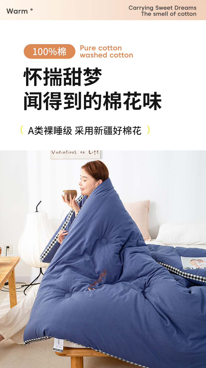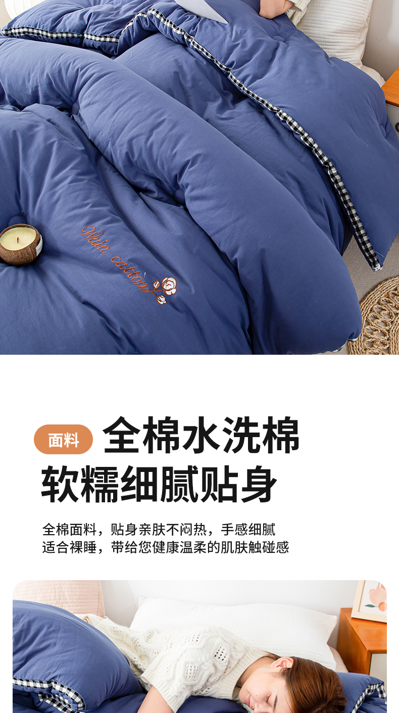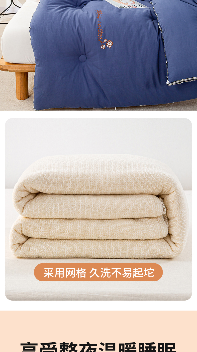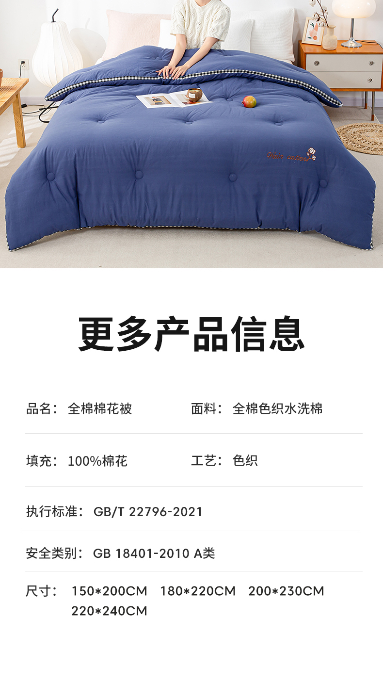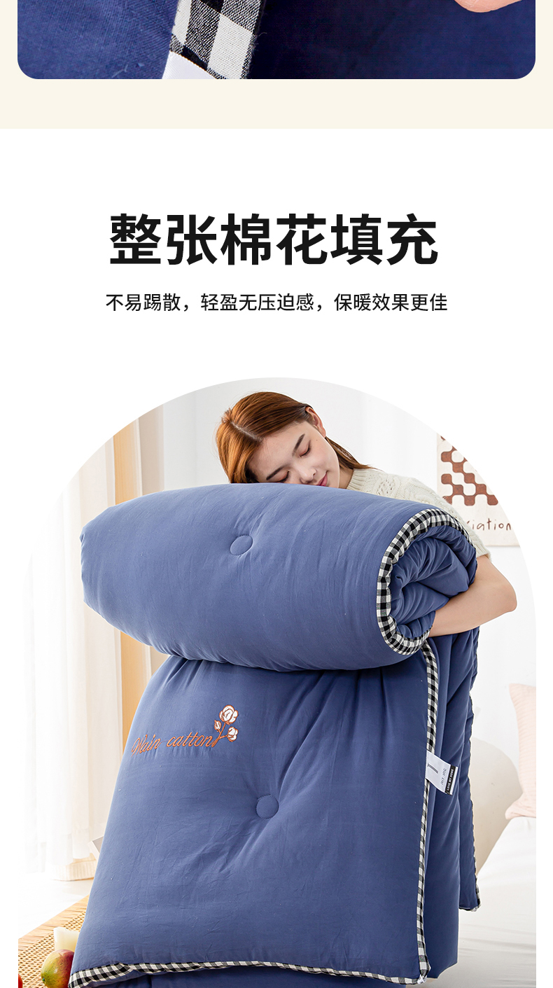 • 91家纺网 家纺一手货源 找家纺 鸣升家纺 新款棋盘格全棉色织水洗棉棉花被冬被被子被芯 棋盘格--深蓝
