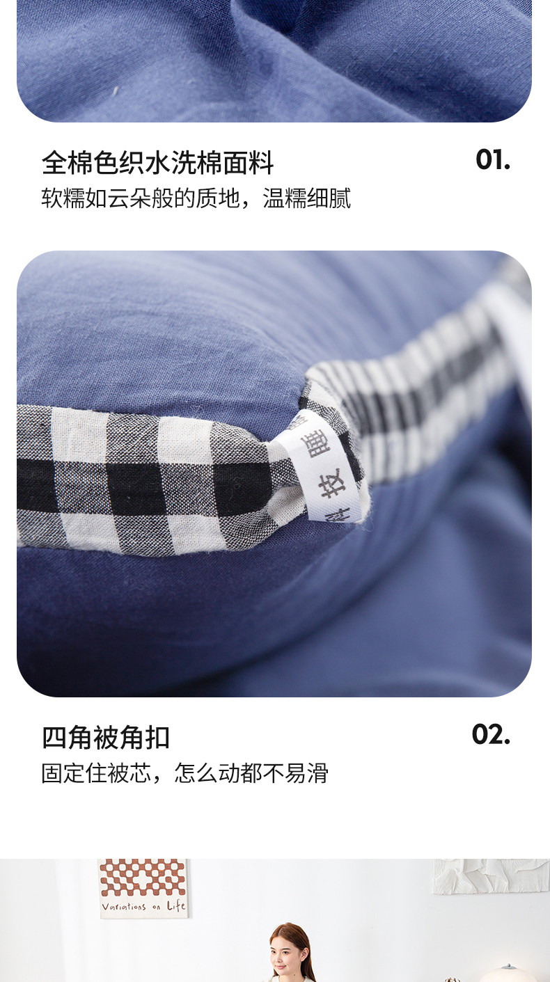(总)鸣升家纺 2026新款全棉色织水洗棉贝壳边棉花空调被夏凉被夏被四件套,果绿,姜黄,莎粉,天空蓝,月光灰,组合图仅供参考不可下单