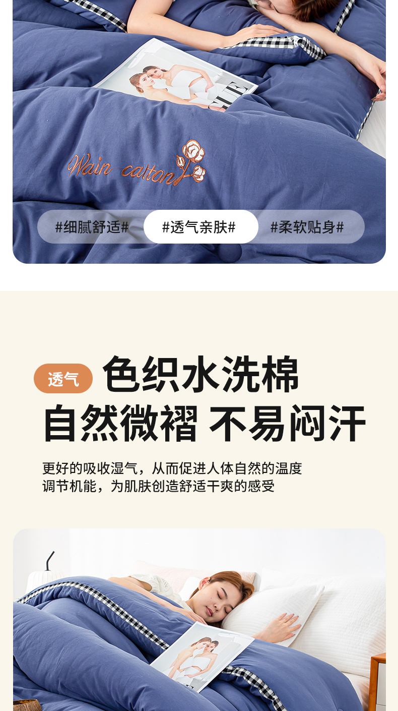 • 91家纺网 家纺一手货源 找家纺 (总)鸣升家纺 2026新款全棉色织水洗棉贝壳边棉花空调被夏凉被夏被四件套,果绿,姜黄,莎粉,天空蓝,月光灰,组合图仅供参考不可下单