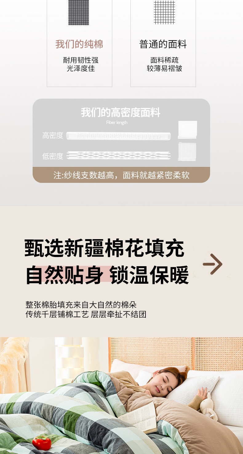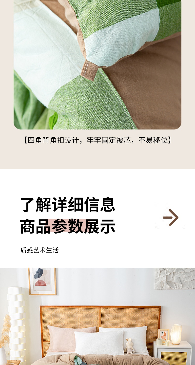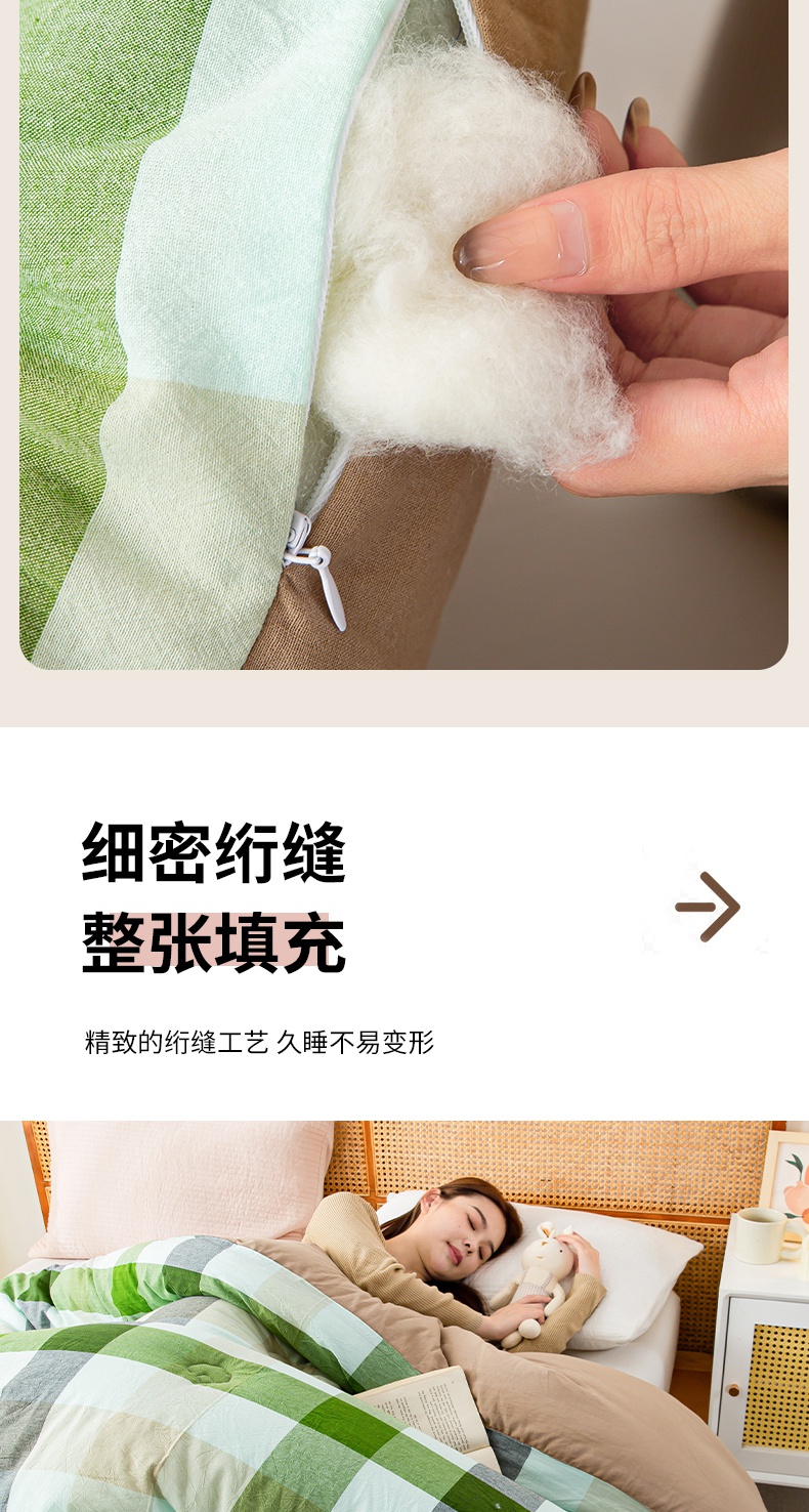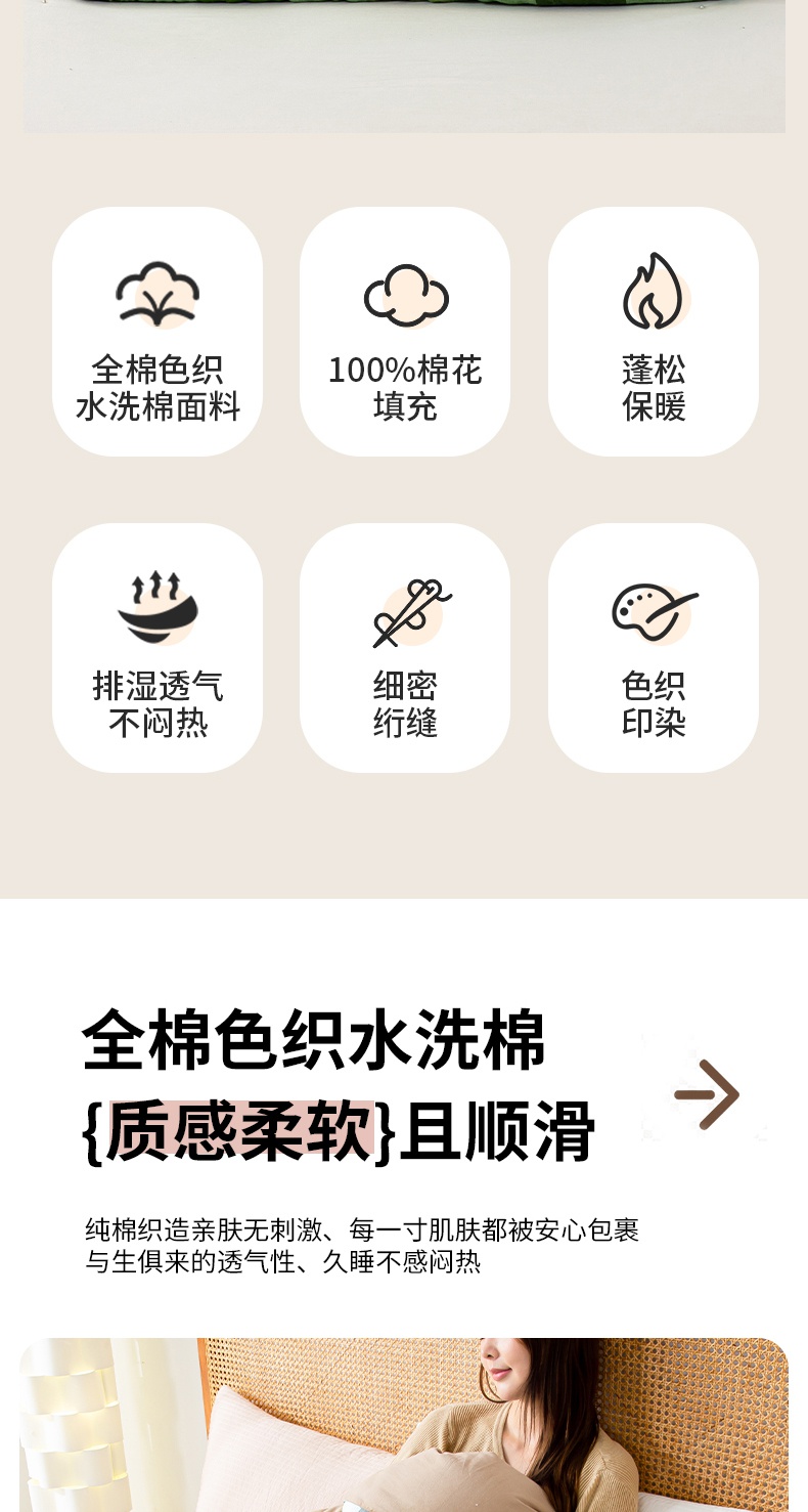 • 91家纺网 家纺一手货源 找家纺 鸣升家纺 新款无印风全棉色织水洗棉100%棉花被冬被被子被芯 海青鲜绿格