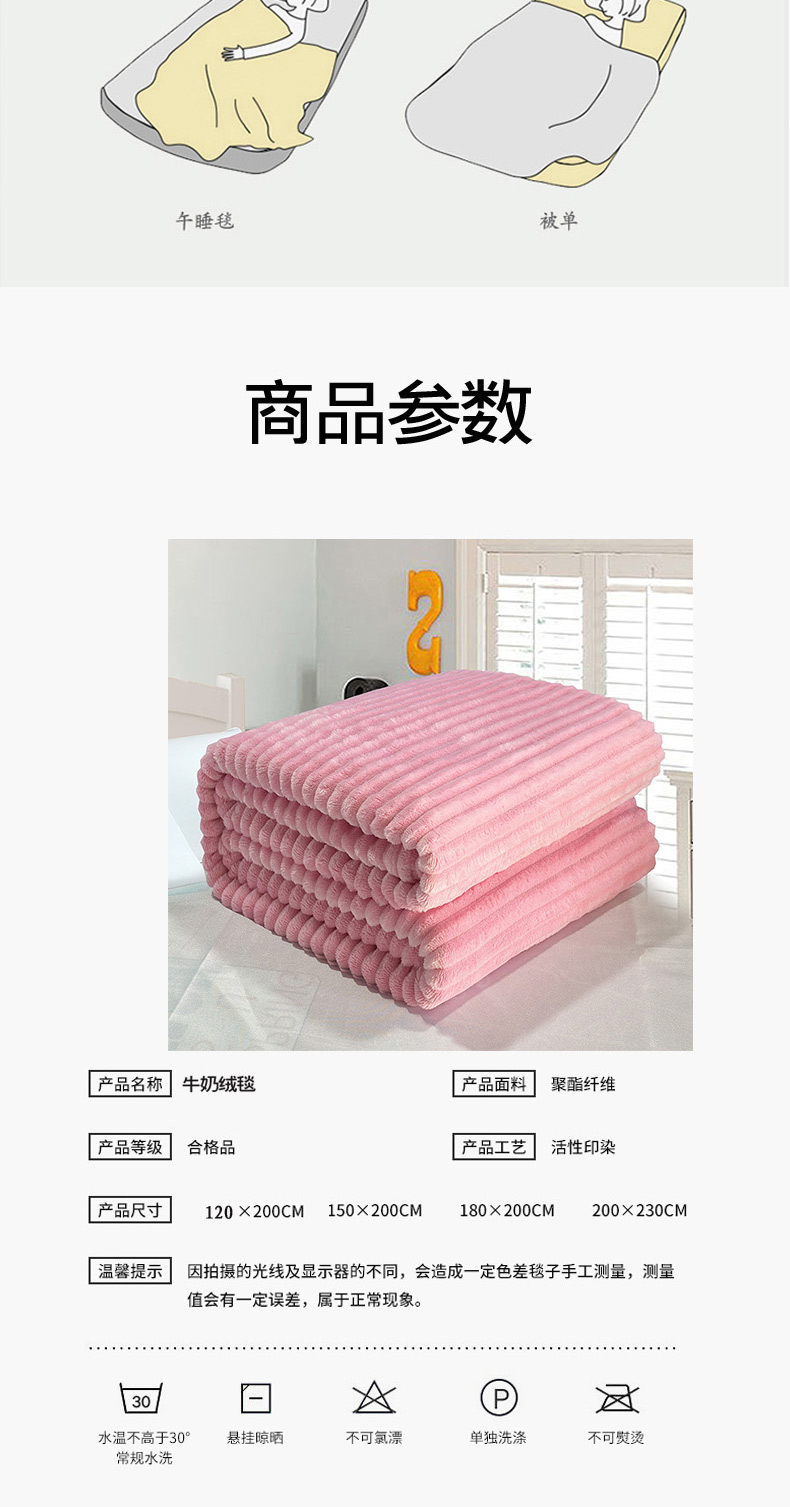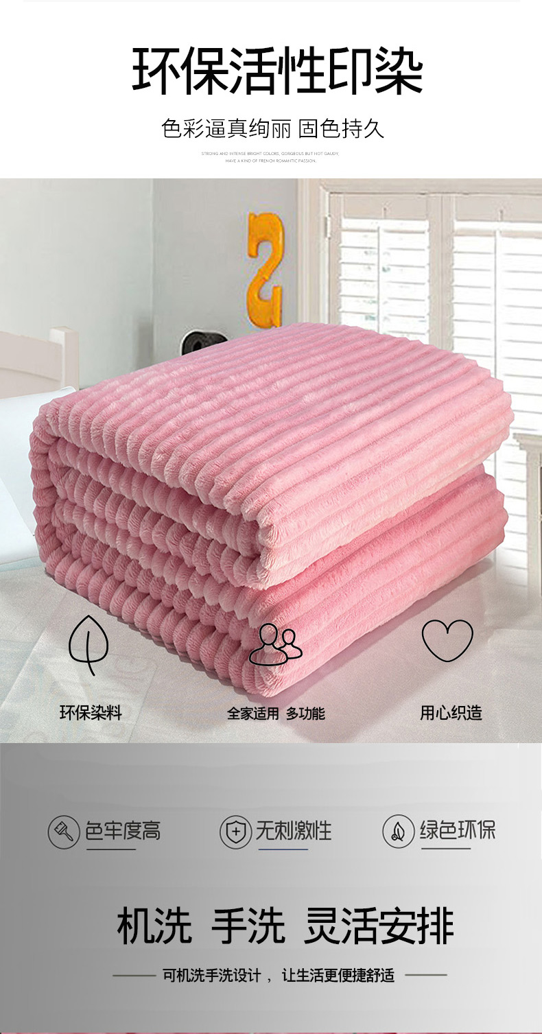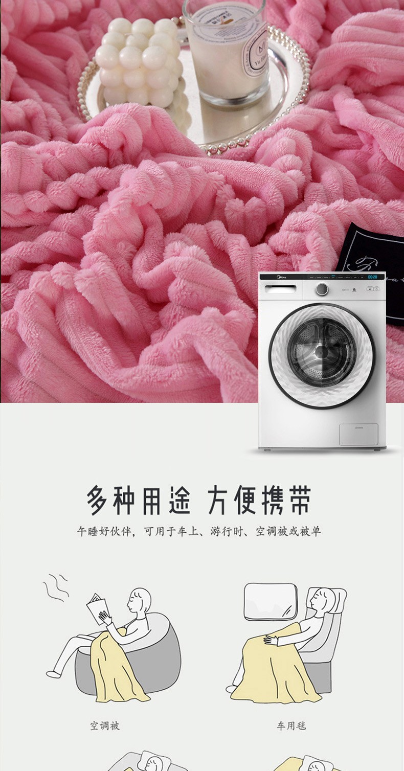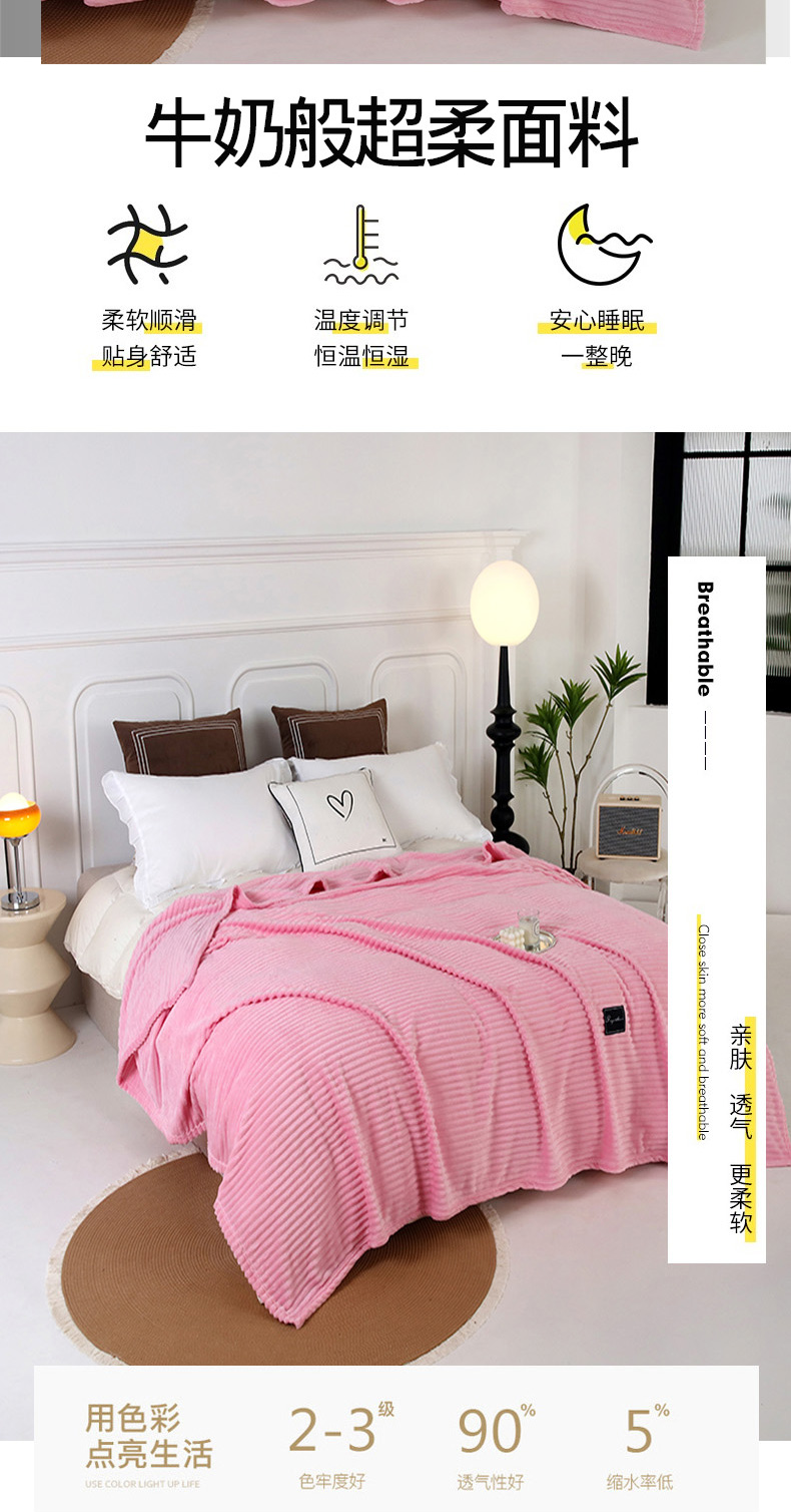 商品名称:2025总 纯色条纹空调毯抽条毛毯魔法绒牛奶绒雪花绒午睡毯法莱绒多用毯