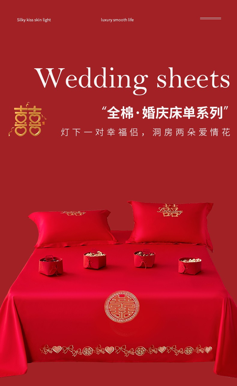 (总)玉雅家纺 2025新款100支长绒棉刺绣婚庆床单单件绣花三件套,长绒棉床单-情定,长绒棉床单-如意双喜,长绒棉床单-喜上加喜,长绒棉床单-永结同心