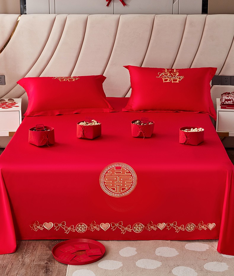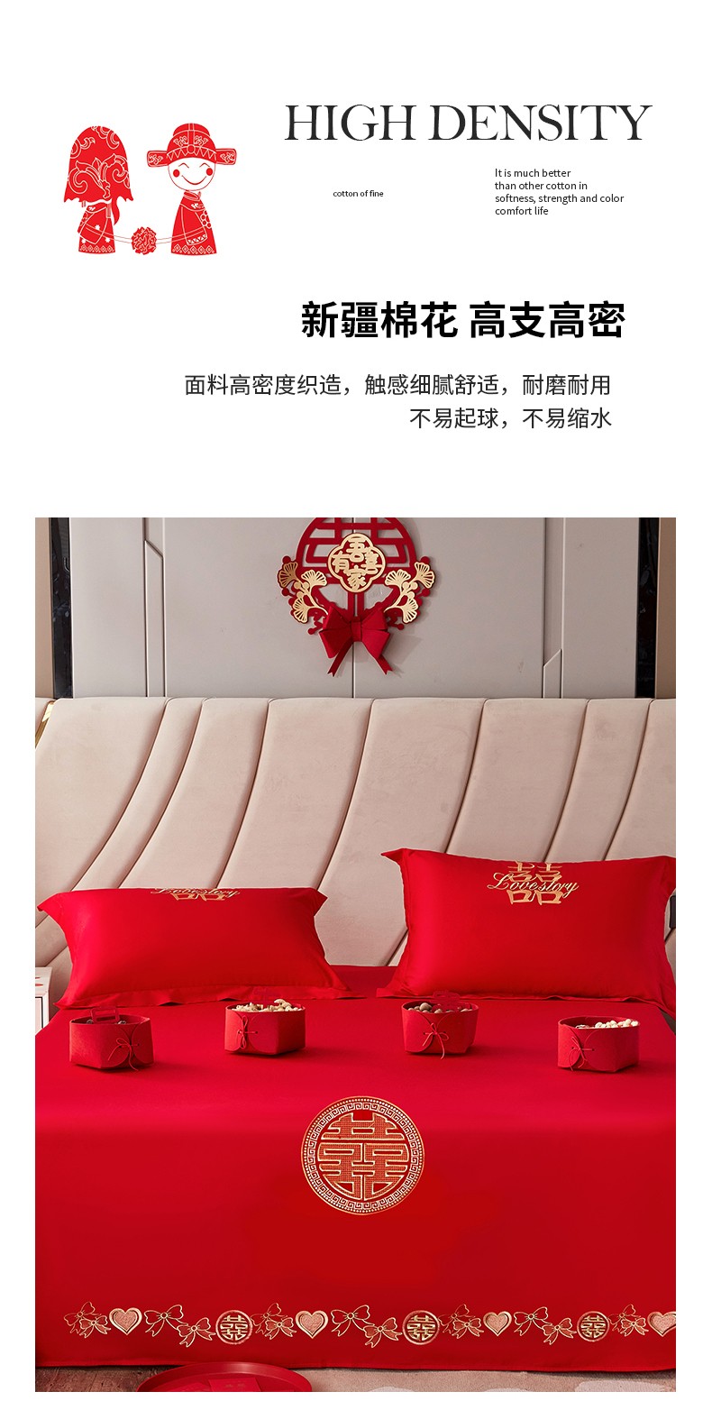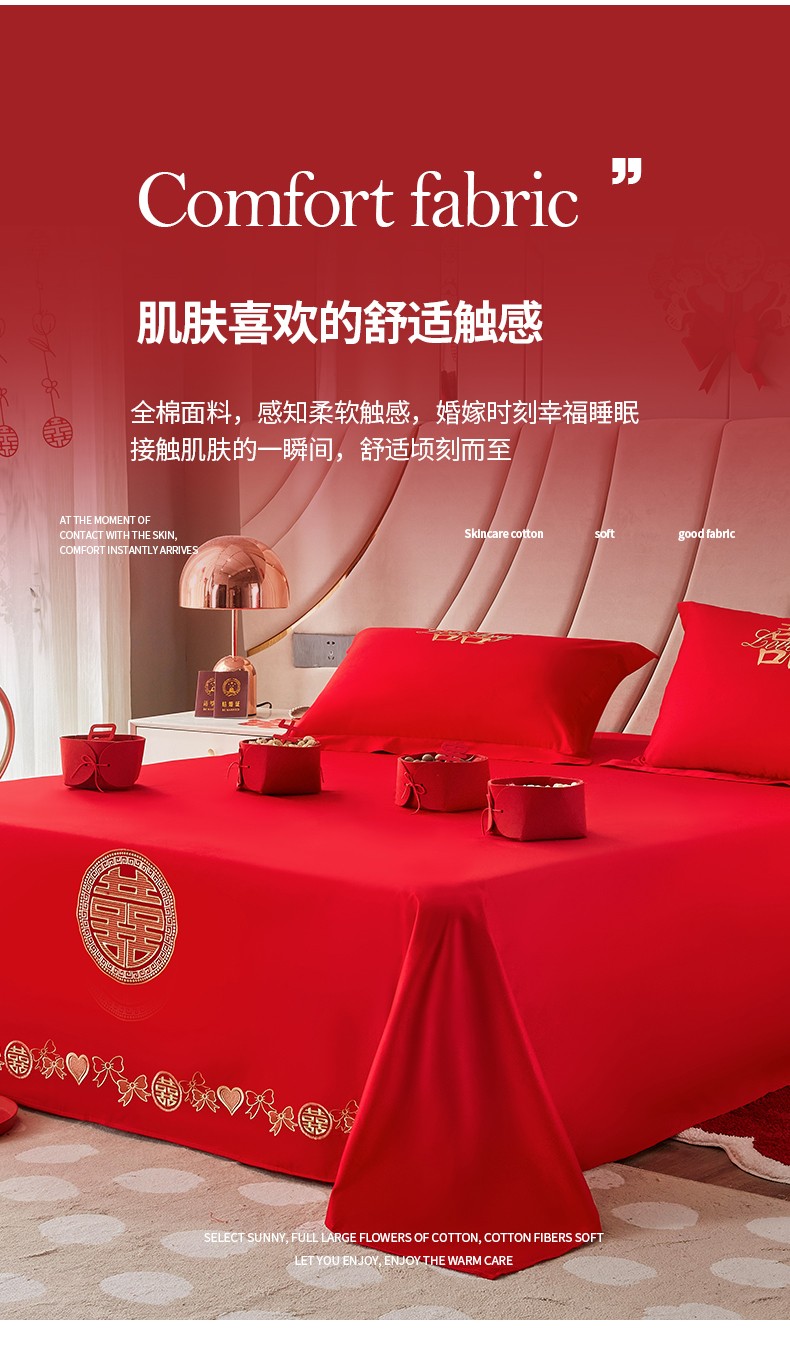 商品名称:2025新款纯棉刺绣婚庆床单单件绣花三件套 婚庆纯棉床单-如意