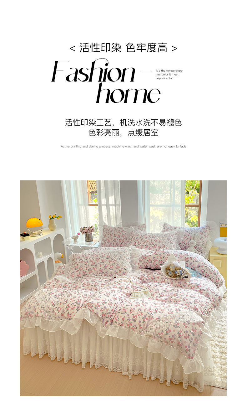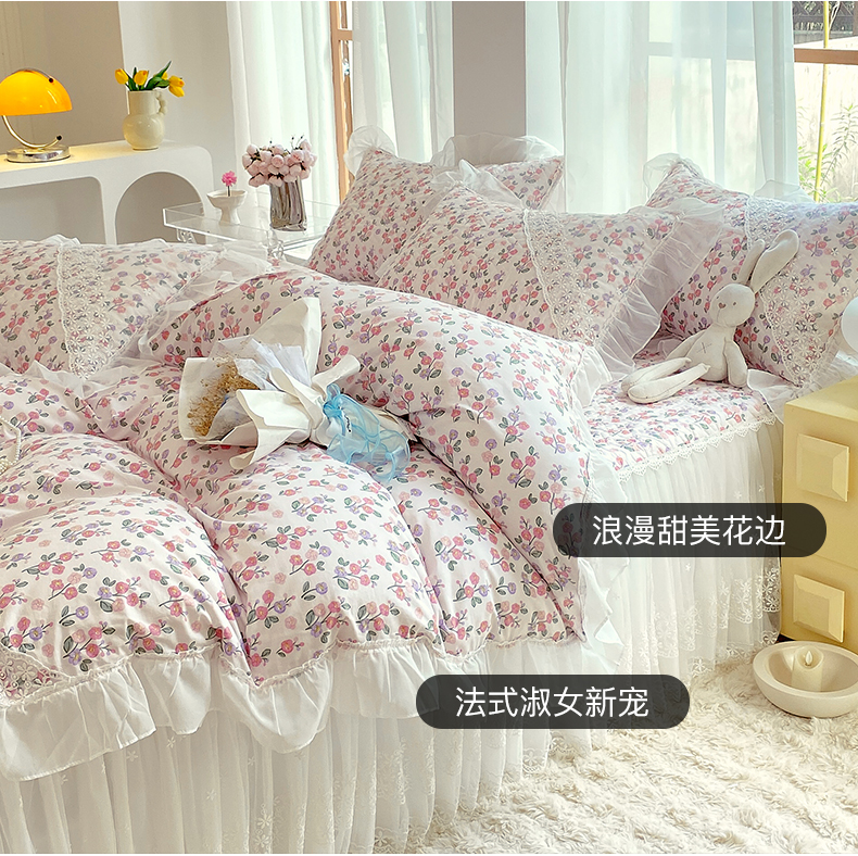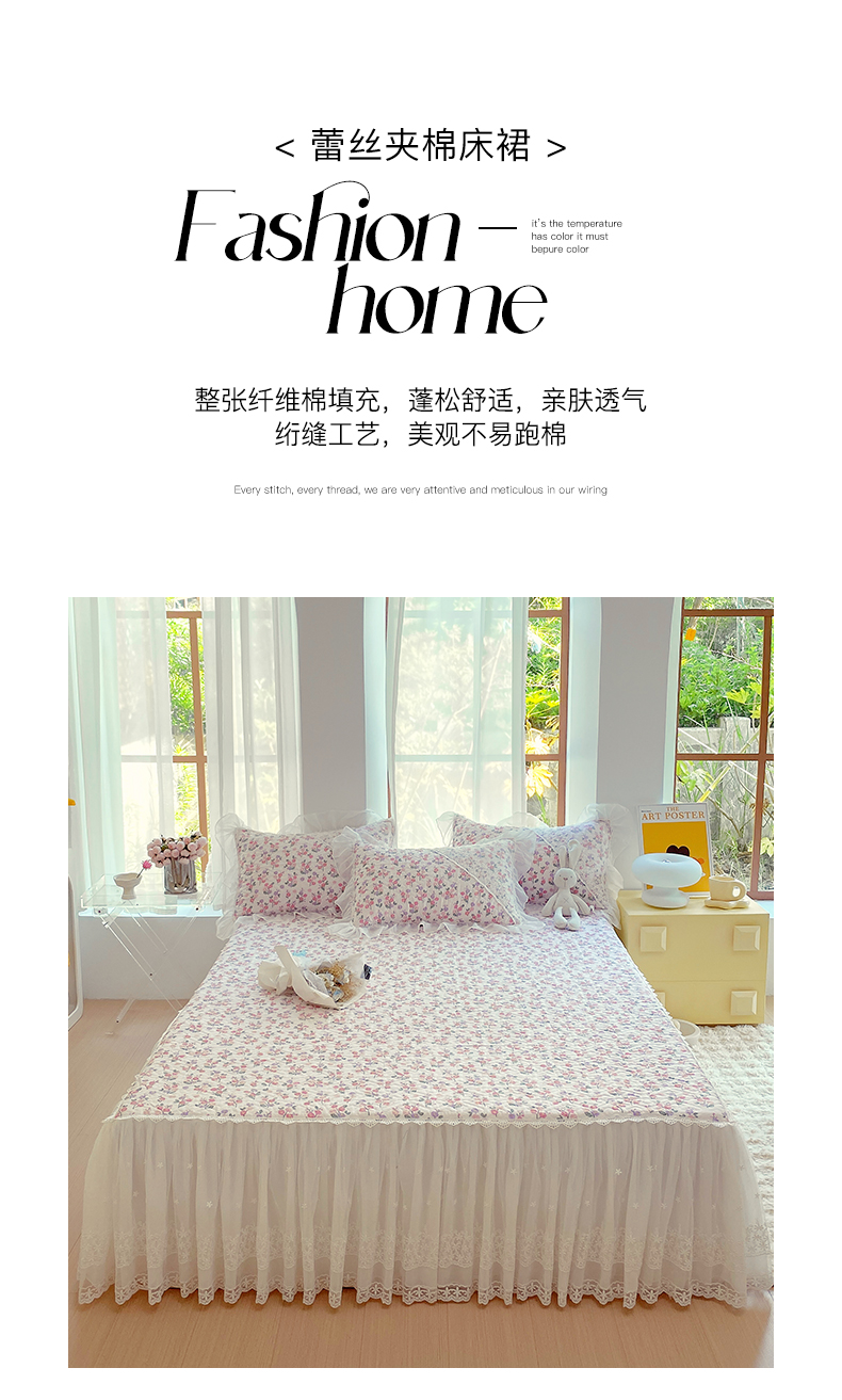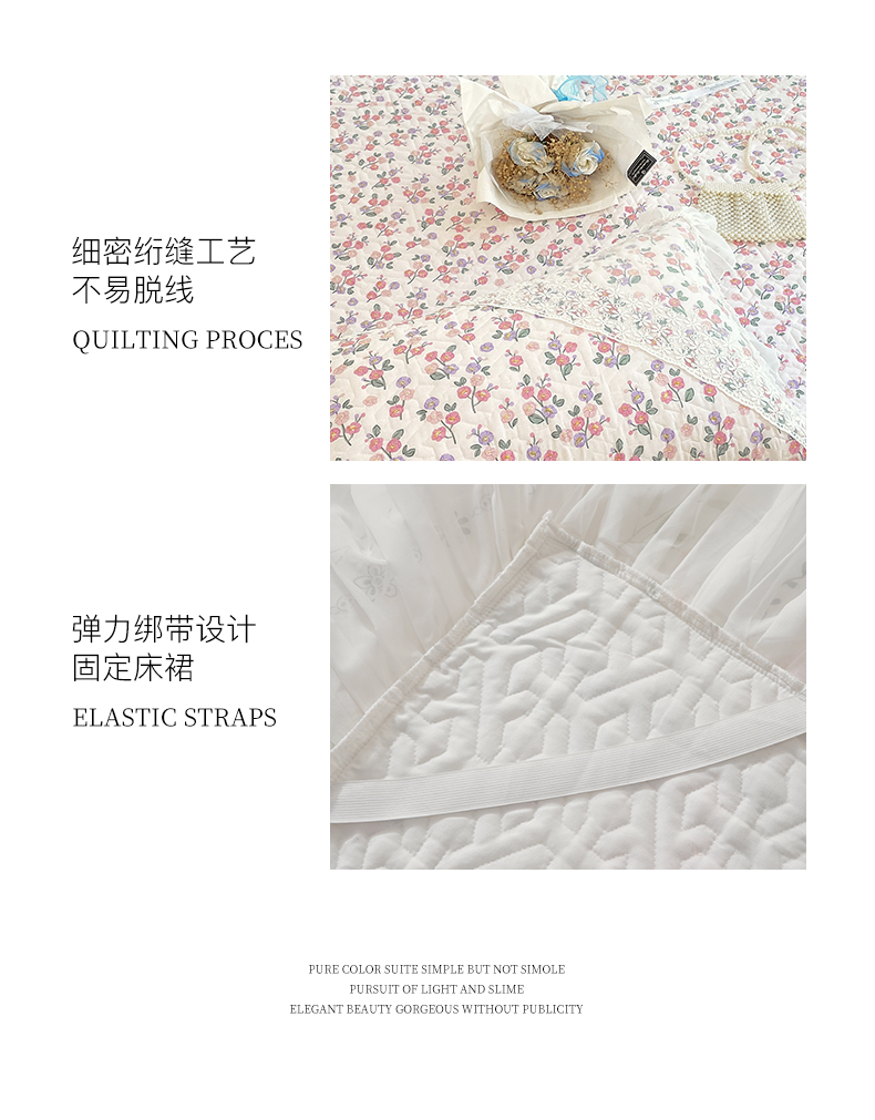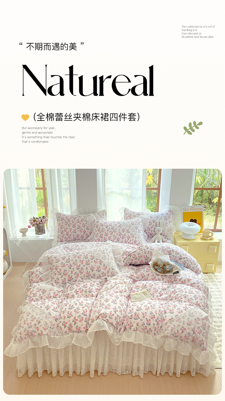 当前位置: 91家纺网 > 商品网购 > 床品套件 > 四件套 > 全棉普通四件套 > 罗艺轩家纺2024新款全棉蕾丝夹棉床裙忆江南系列-四件套 忆江南~摇曳花开
