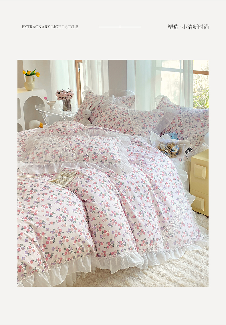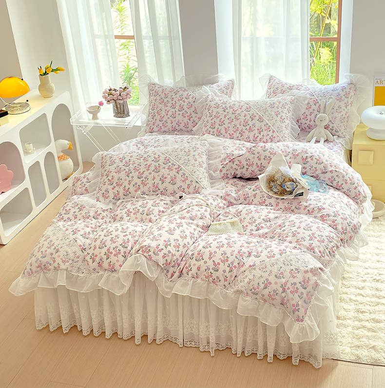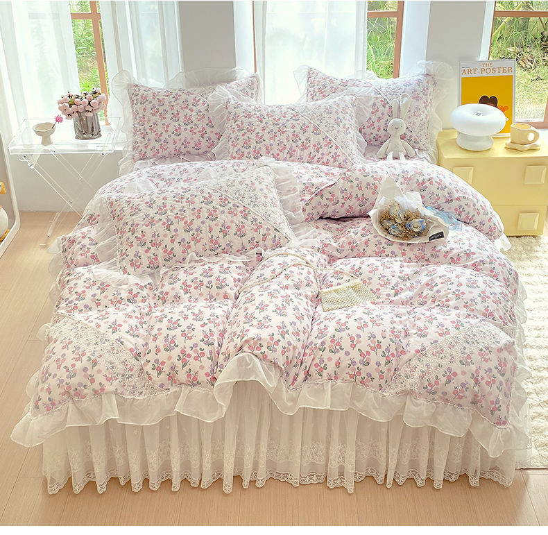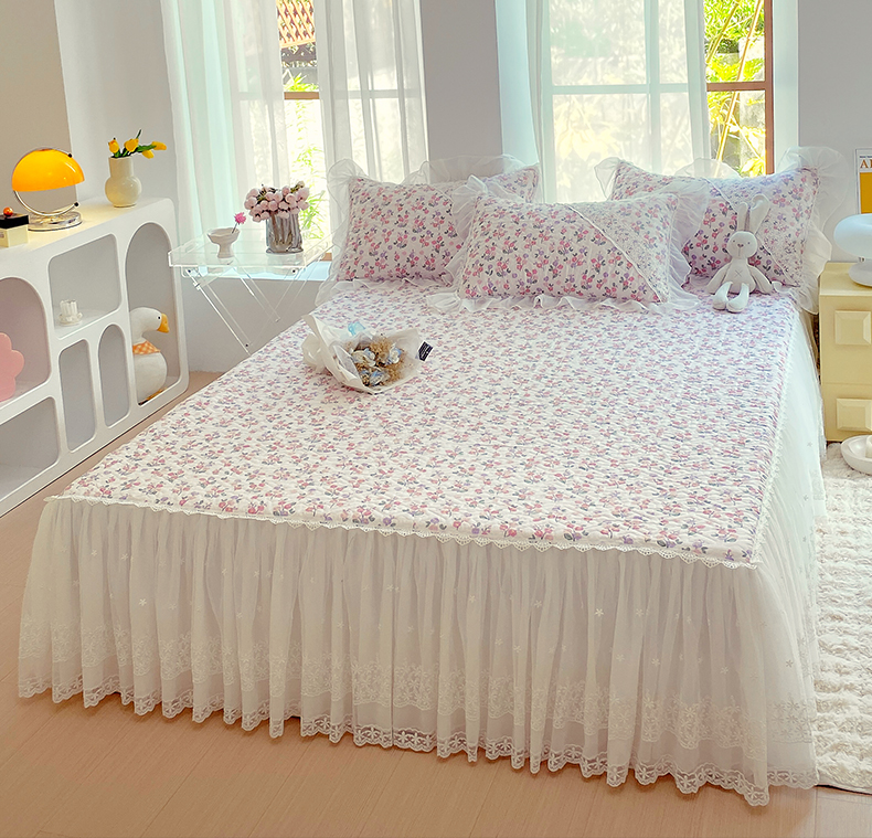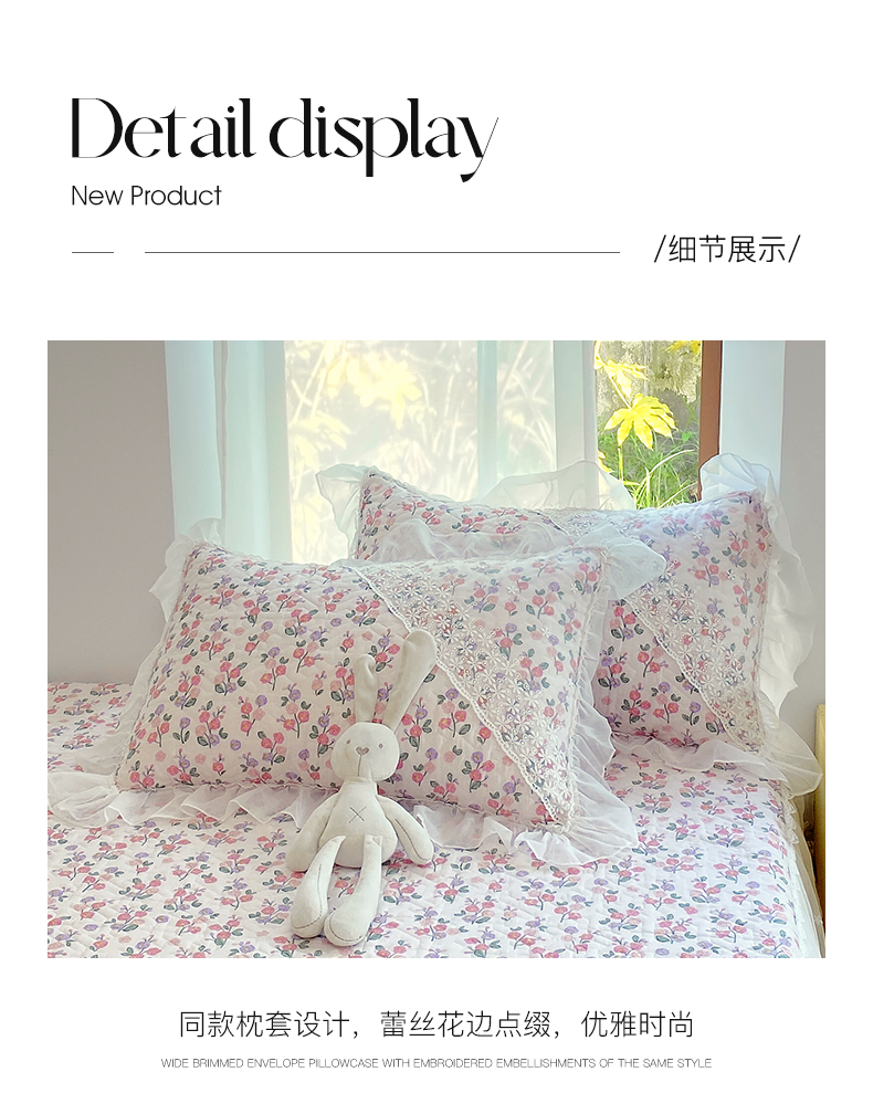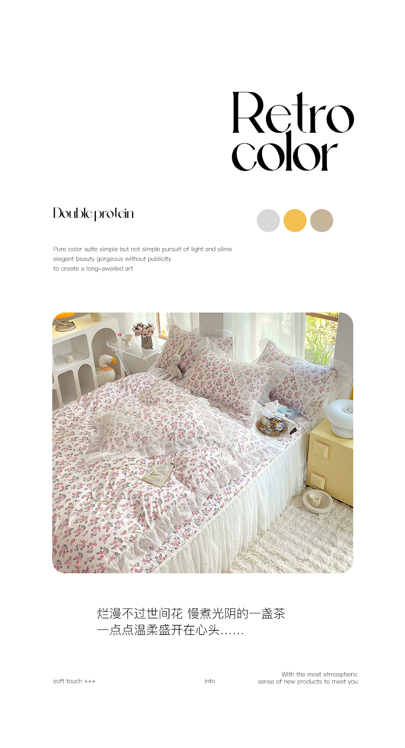 当前位置: 91家纺网 > 商品网购 > 床品套件 > 四件套 > 全棉普通四件套 > 罗艺轩家纺2024新款全棉蕾丝夹棉床裙忆江南系列-四件套 忆江南~摇曳花开