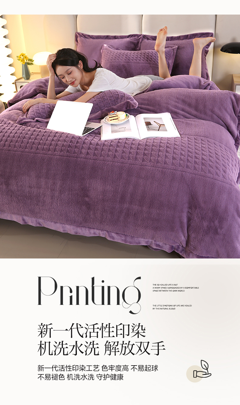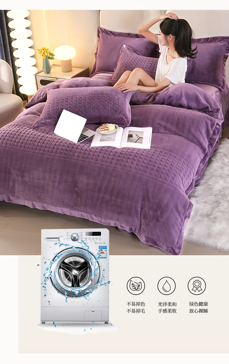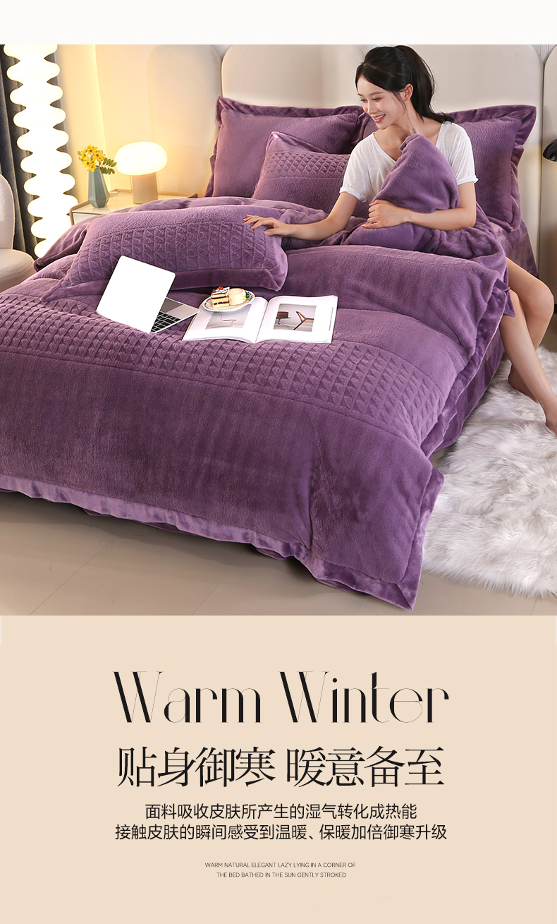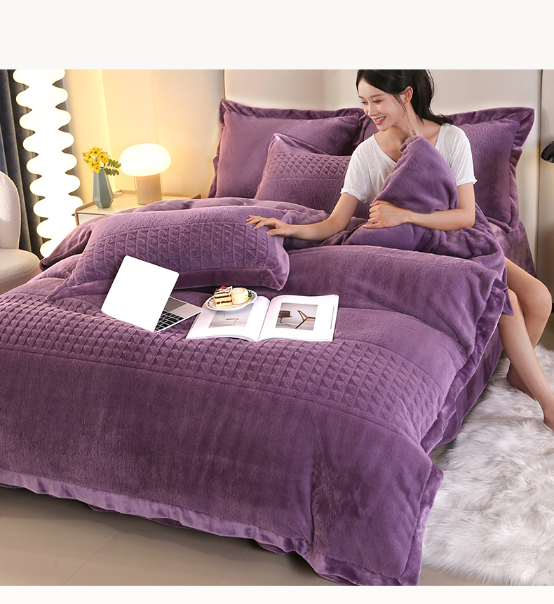 (总)代芙家纺 2025新款宝宝绒夹棉床盖款四件套,甜心-粉豆沙,甜心-海蓝,甜心-火山红,甜心-魔力紫,甜心-优雅灰
