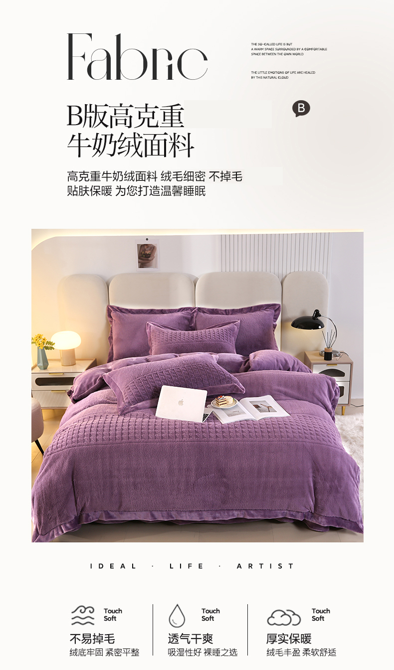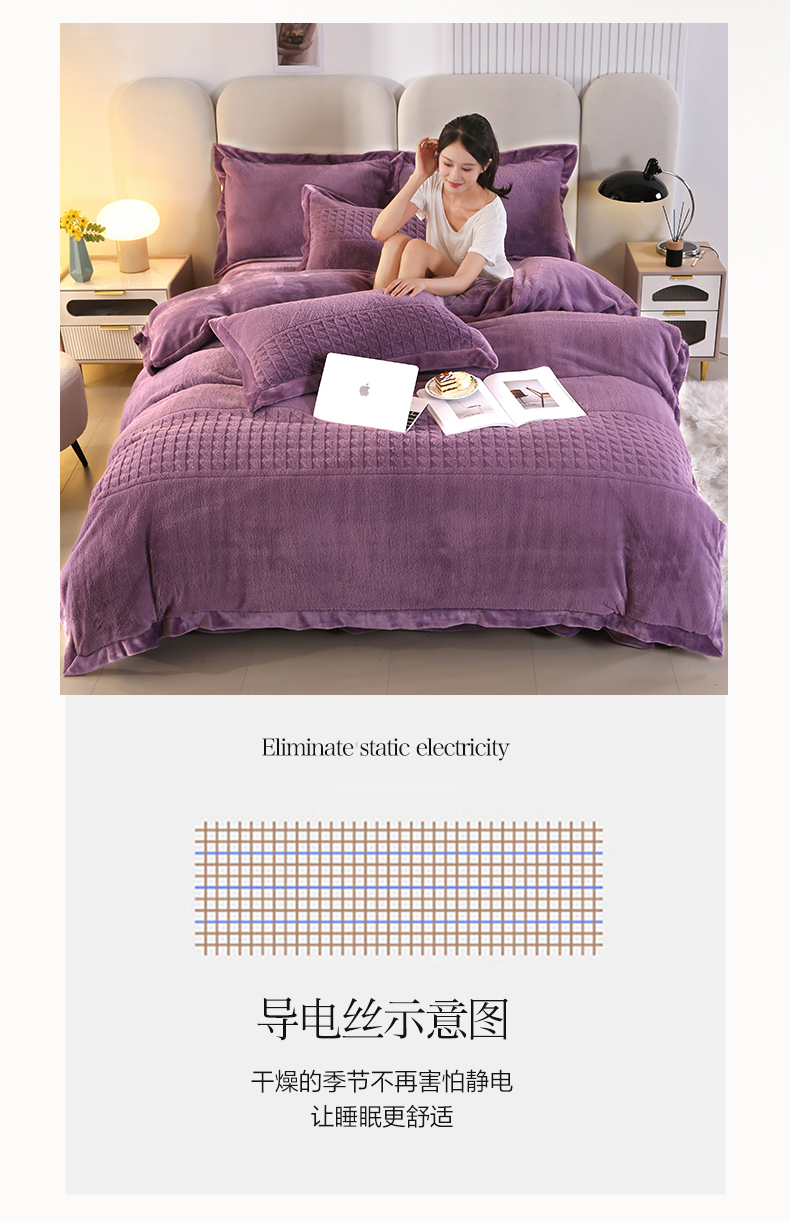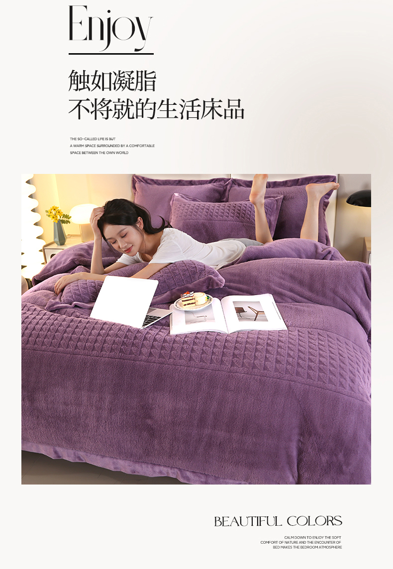 (总)代芙家纺 2025新款宝宝绒夹棉床盖款四件套,甜心-粉豆沙,甜心-海蓝,甜心-火山红,甜心-魔力紫,甜心-优雅灰