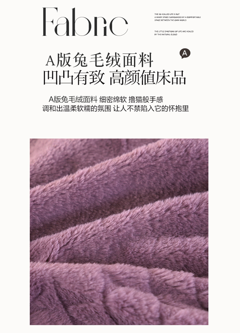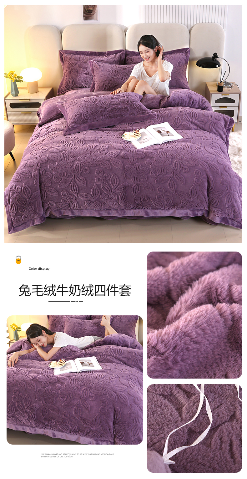 商品名称:代芙 2024新款高克重电商直播爆款11斤提花兔毛绒牛奶绒四件套 爱心-紫
