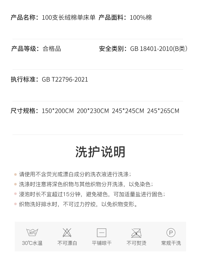 商品名称:(总)DC 2024新款100支长绒棉纯色悠品系列--单床单