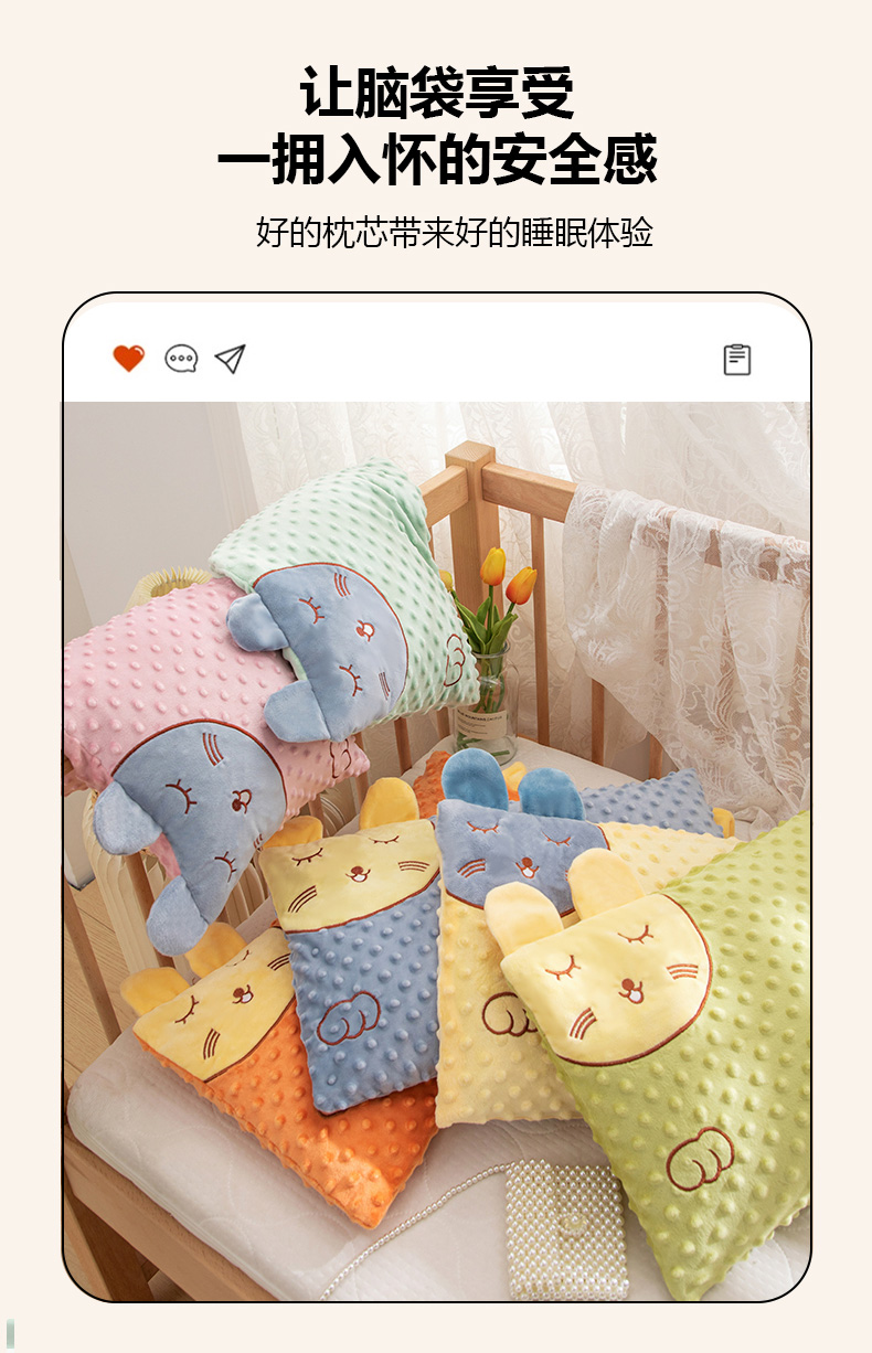 • 91家纺网 家纺一手货源 找家纺 织布人 2023新款枕芯幼儿园儿童学生枕猫咪刺绣豆豆绒安抚枕枕套+枕芯 豆豆猫咪枕-桔色
