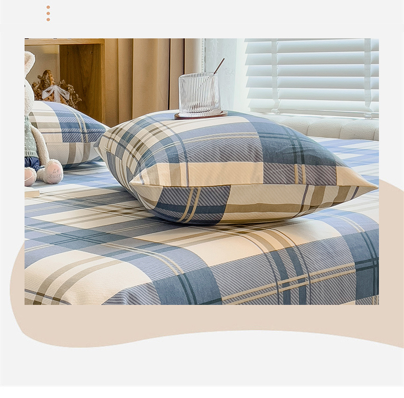 芃成家纺 2023新款磨毛系列磨毛枕套 简约格-蓝