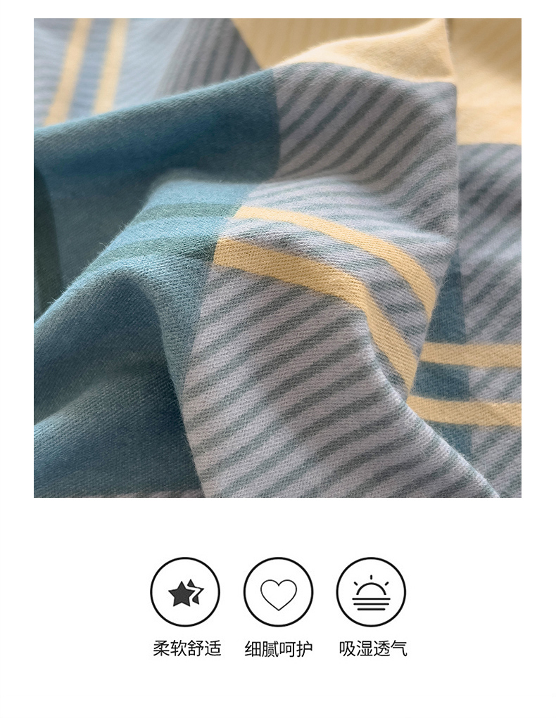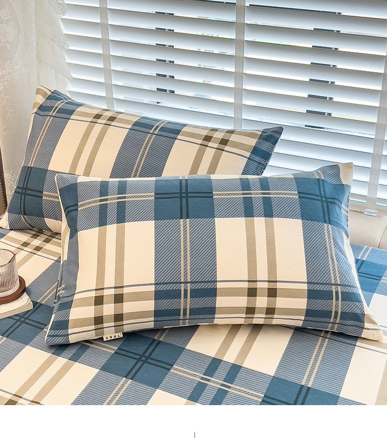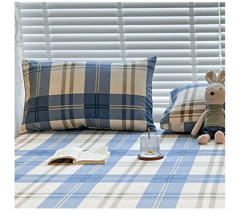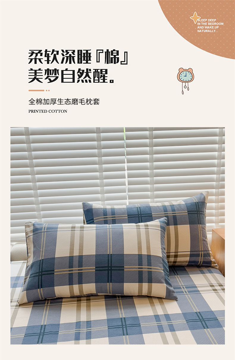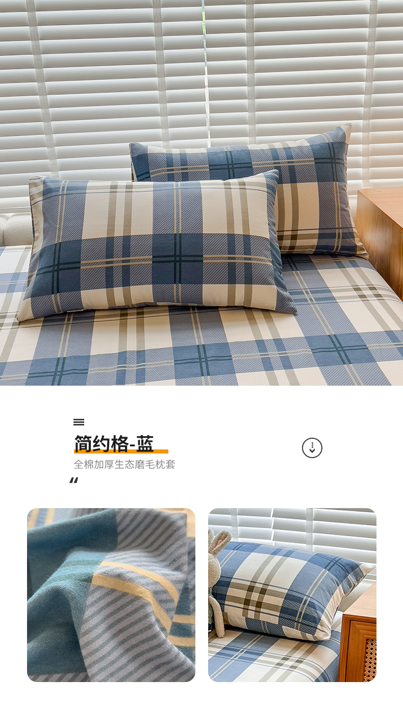 商品名称:芃成家纺 2023新款磨毛系列磨毛枕套 简约格-蓝