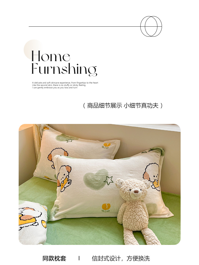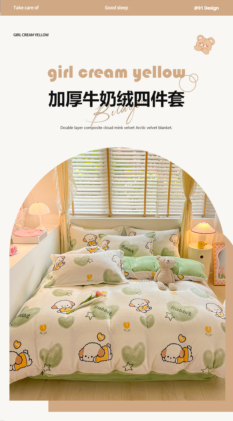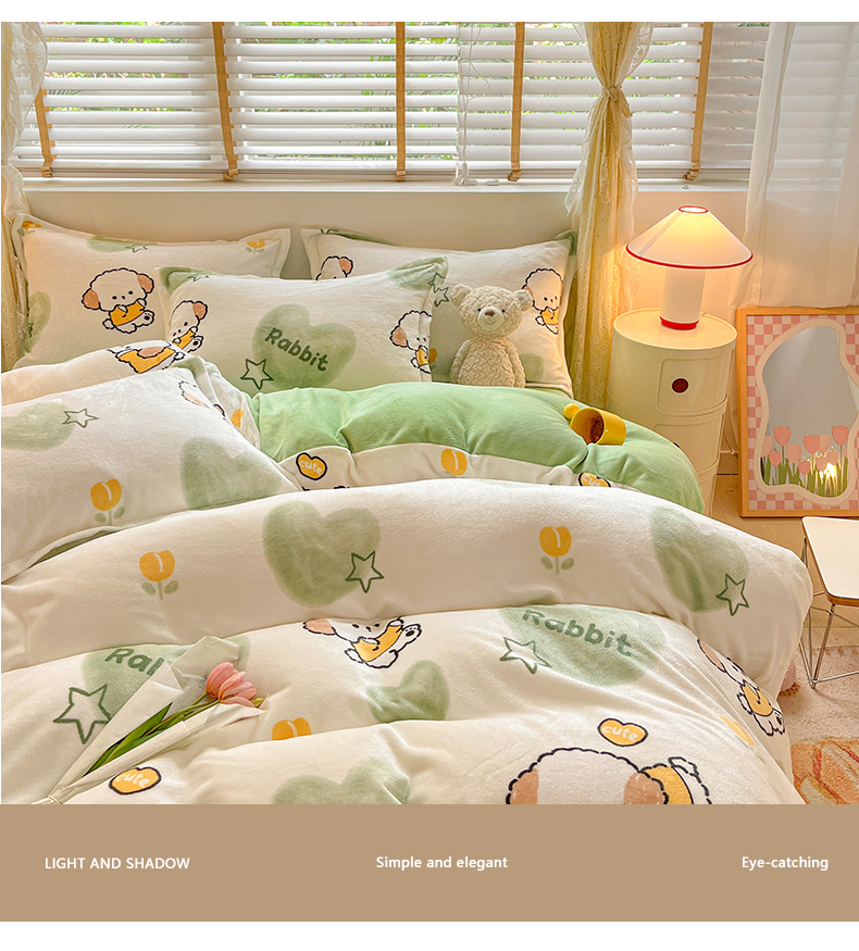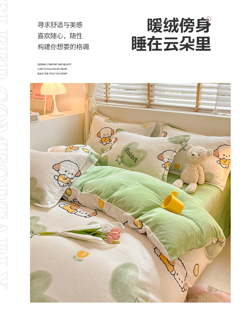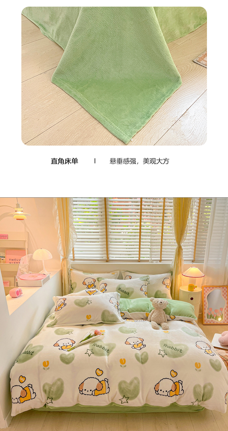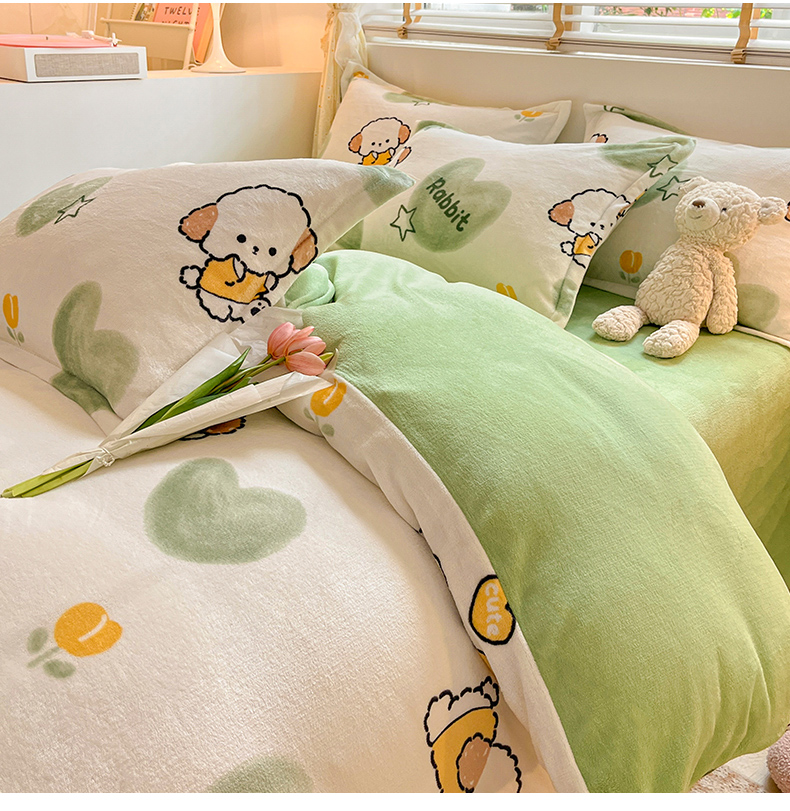 佰亿莱 2025直播新款印花小清新法莱绒牛奶绒四件套 爱心狗