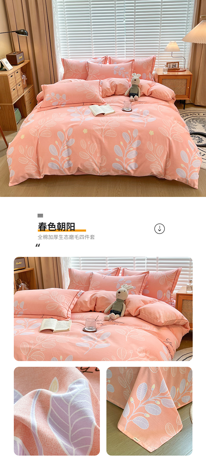芃成家纺 2023新款磨毛四件套 春色朝阳