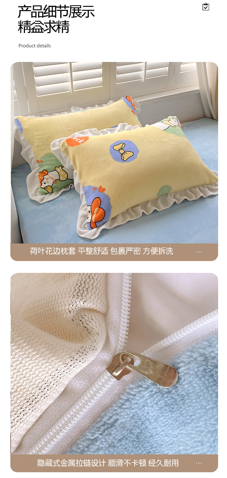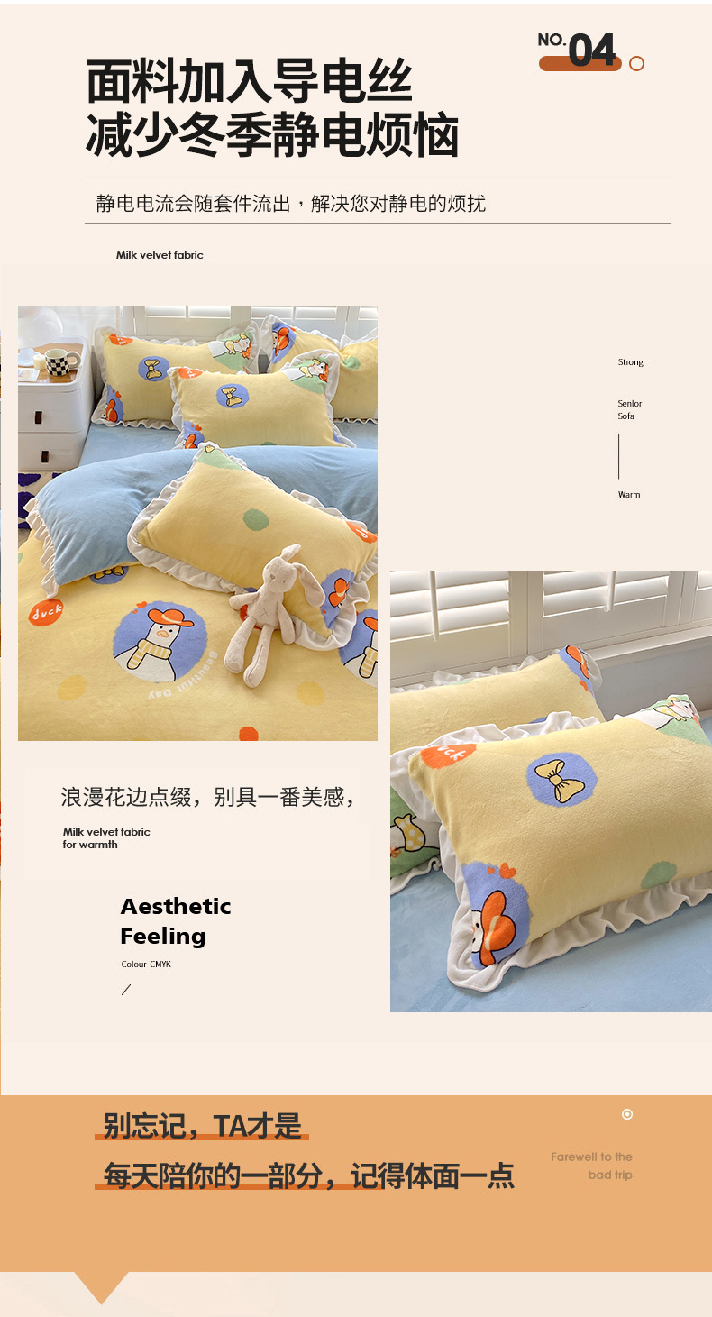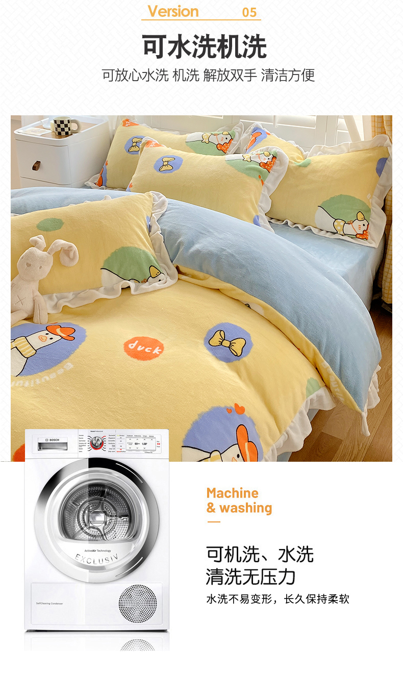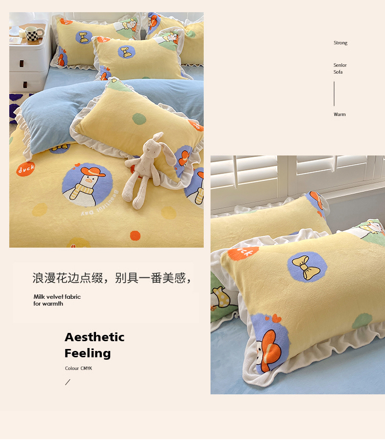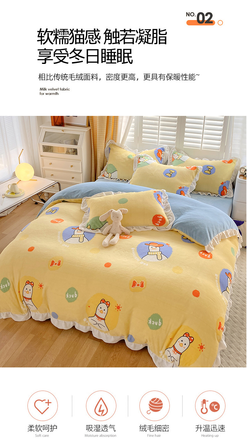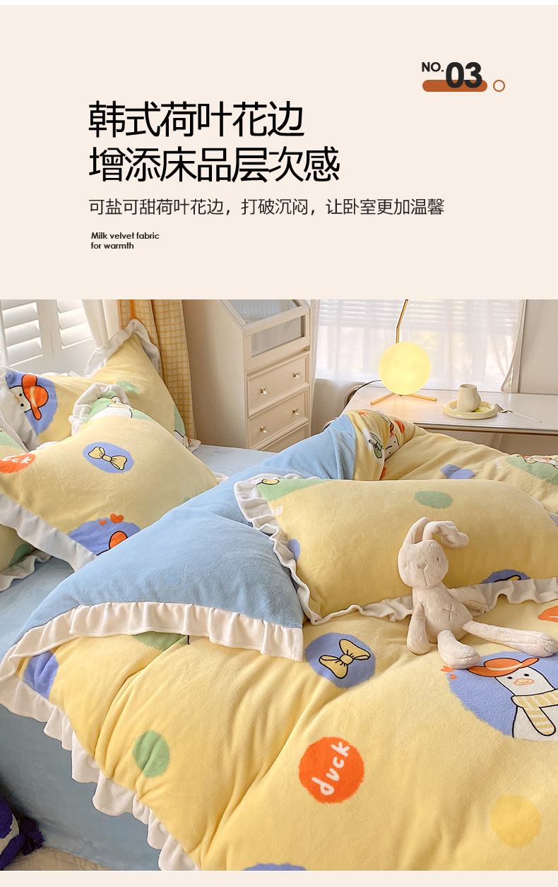 商品名称:宜家坊 2023新款直播韩版印花花边款牛奶绒四件套 加油鸭