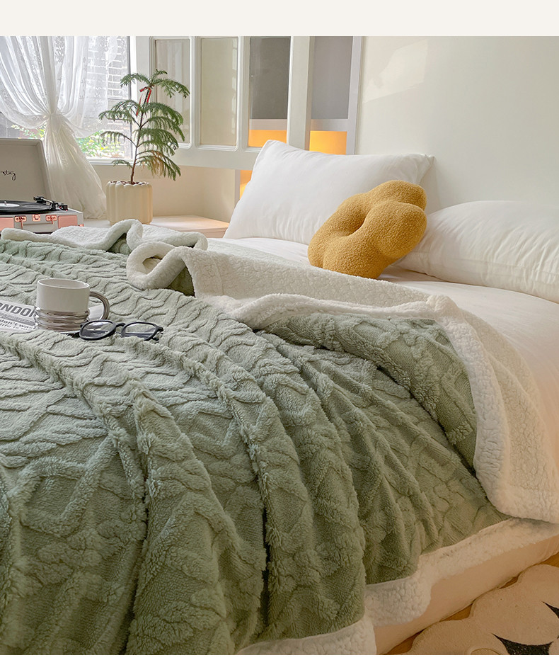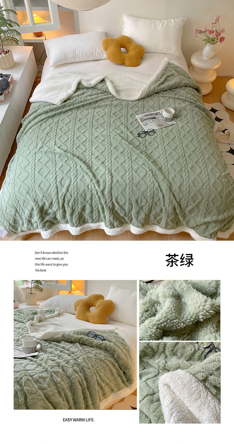 商品名称:欧邦 新款爆款AB版加厚提花塔芙绒羊羔绒毛毯 茶绿