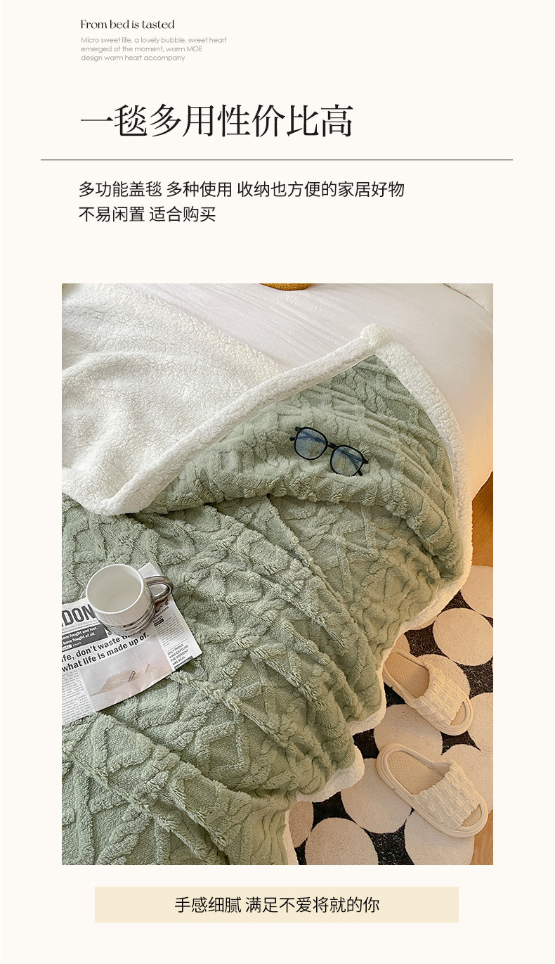 (总)欧邦 2025新款提花暖阳绒羊羔绒毛毯多功能盖毯-梦境系列,梦境-粉玉,梦境-幻白,梦境-米驼,梦境-桑绿,梦境-雾灰