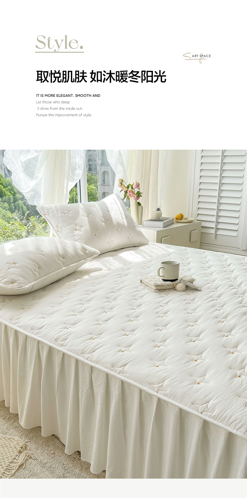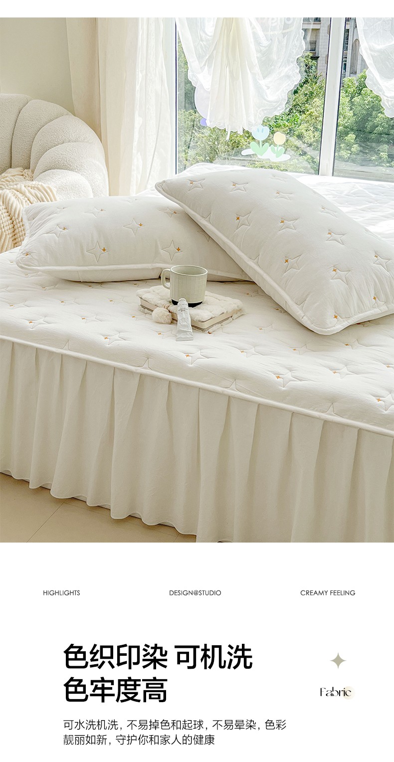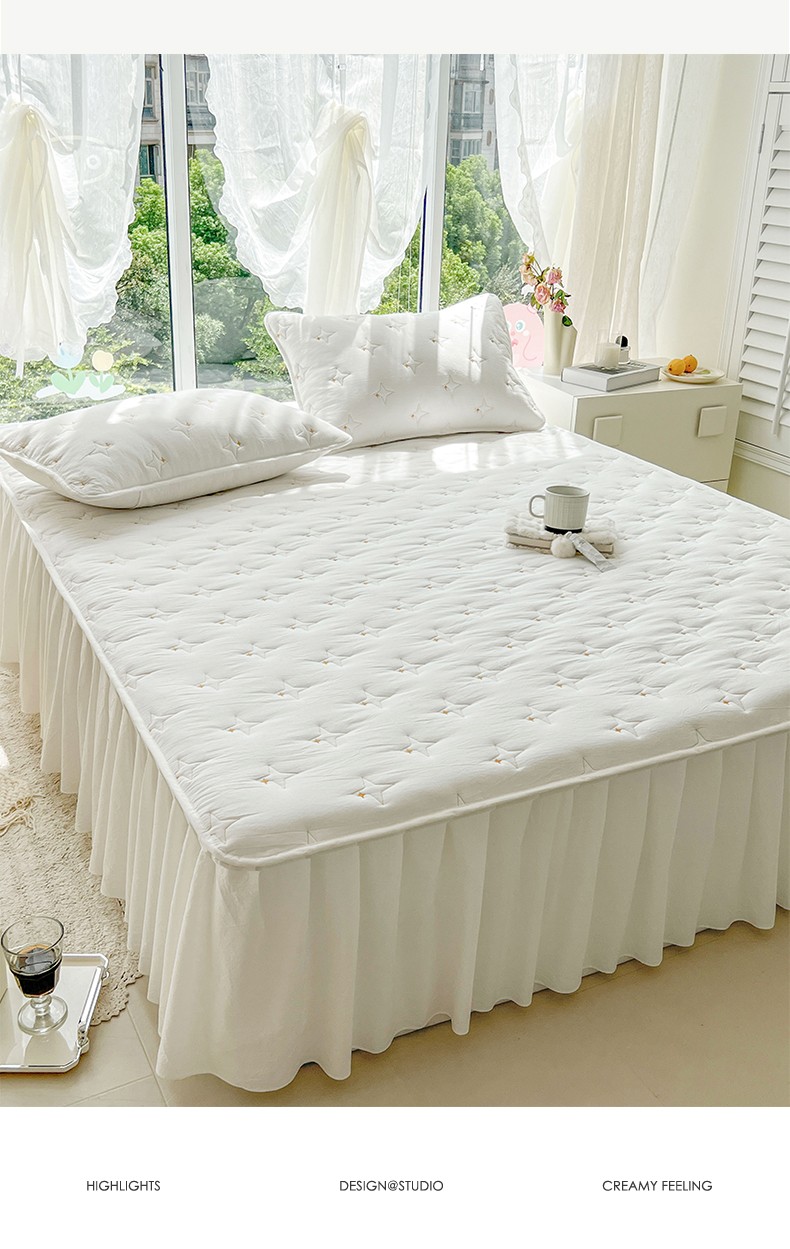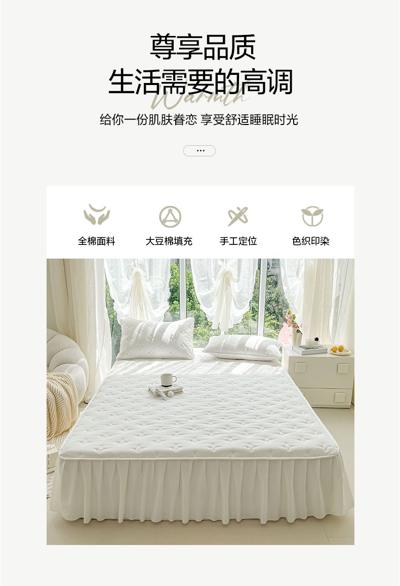 尊康家纺(原磊科) 2024新款亲肤奶昔棉夹棉床裙-风雅 风雅-奶白,风雅-奶白