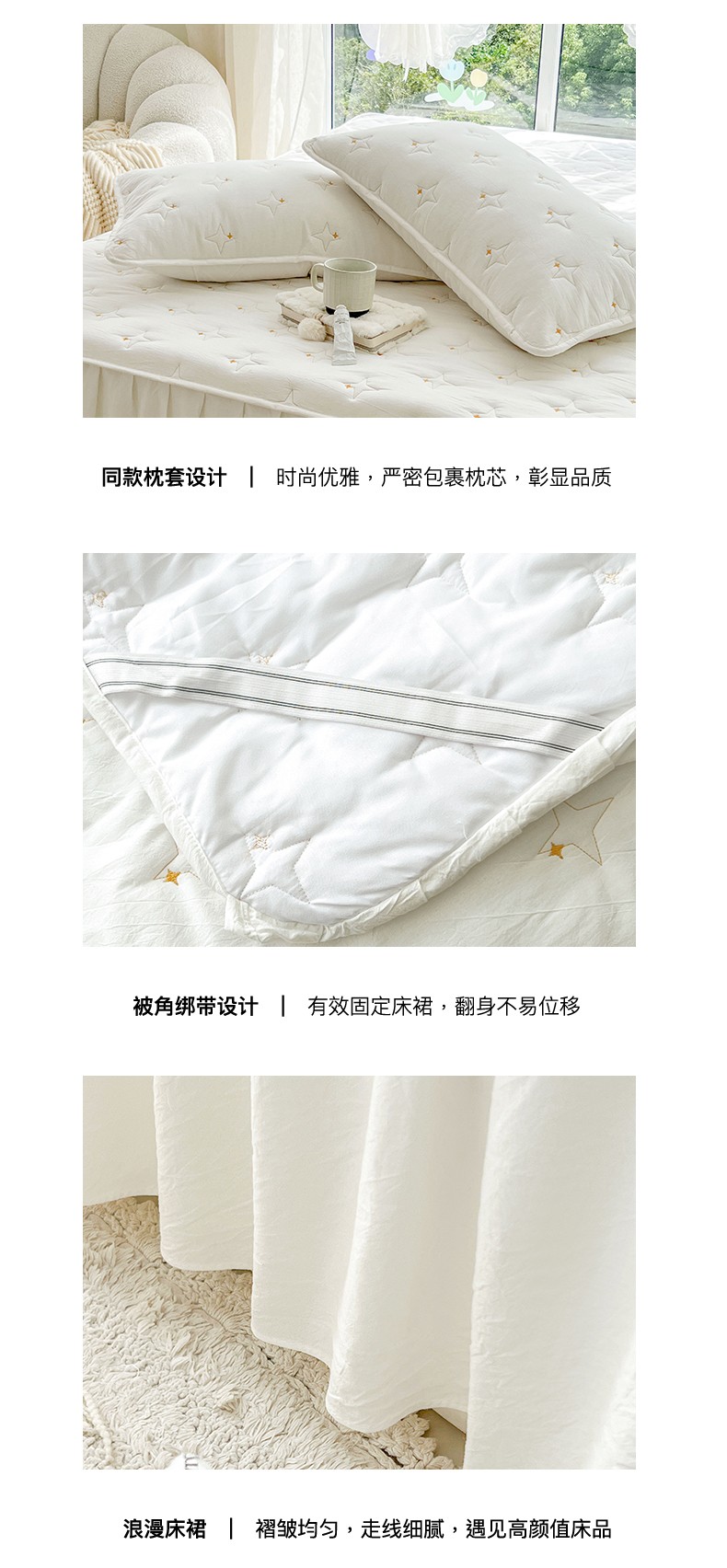 商品名称:尊康家纺(原磊科) 2024新款全棉色织大豆夹棉床裙-浓情蜜意 白