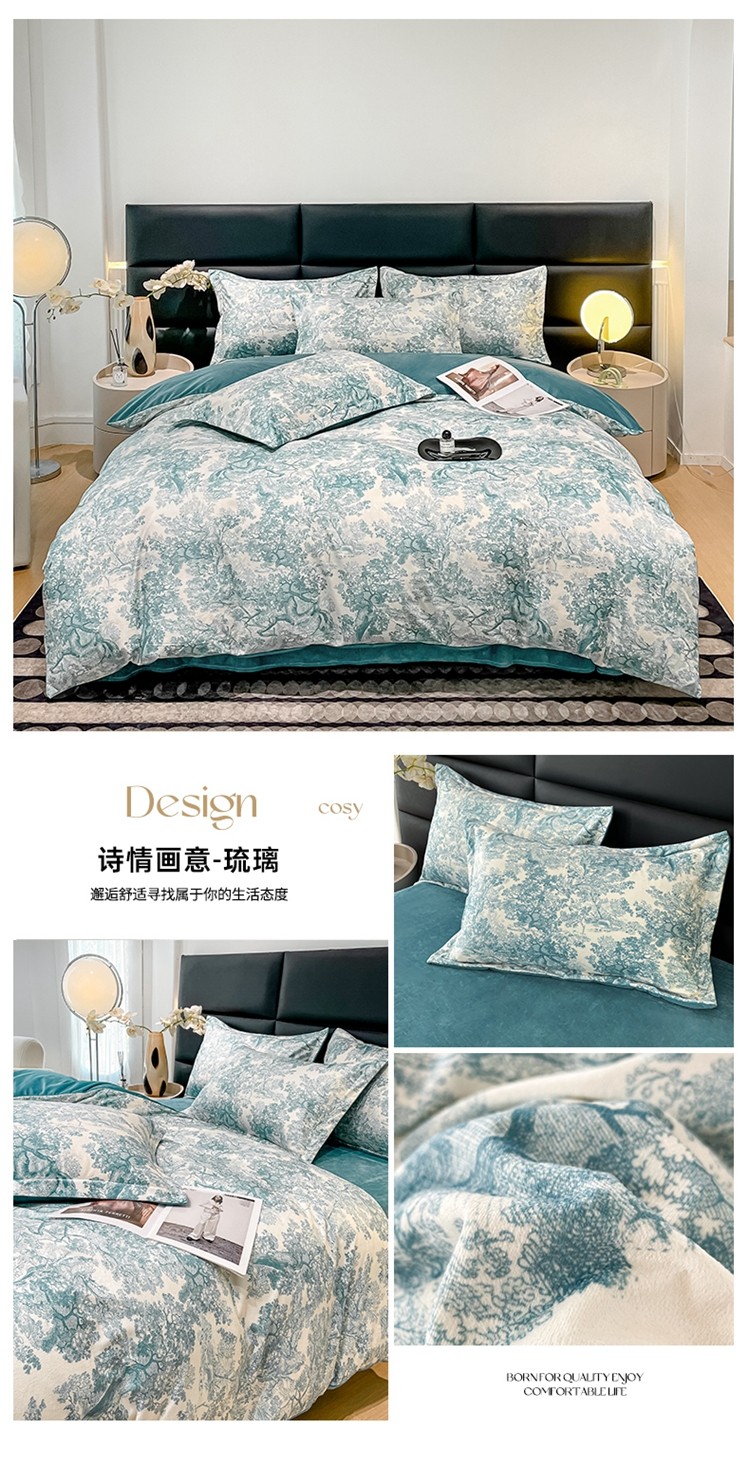 商品名称:慕希2024新款数码印花牛奶绒婴儿绒保暖绒四件套 诗情画意-琉璃