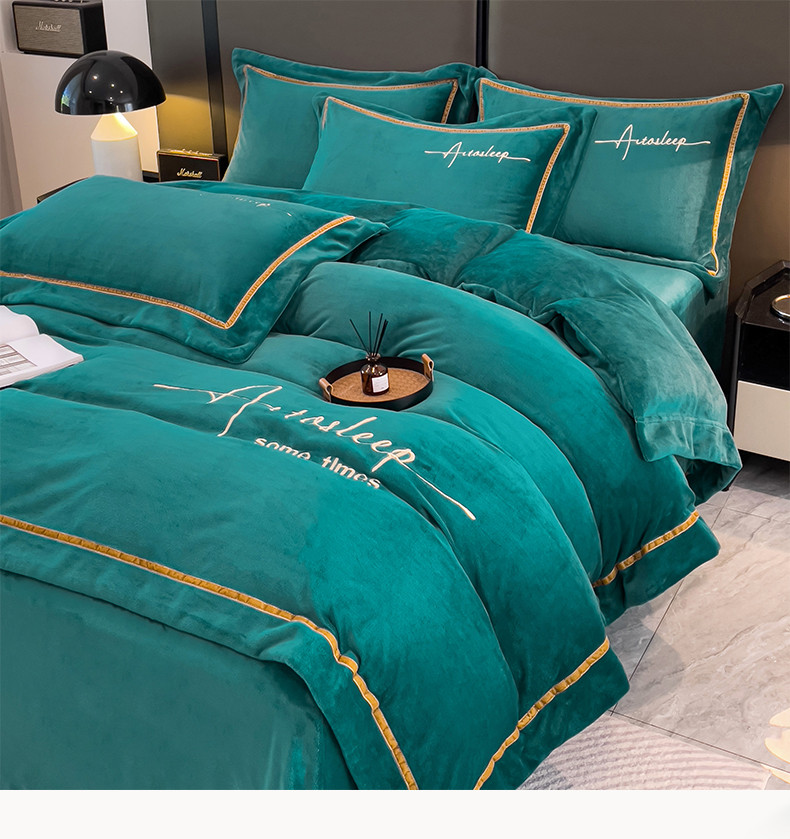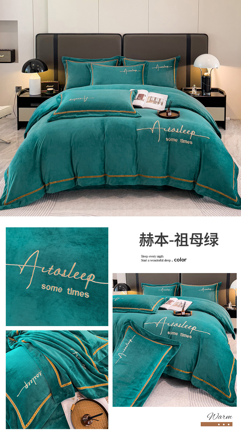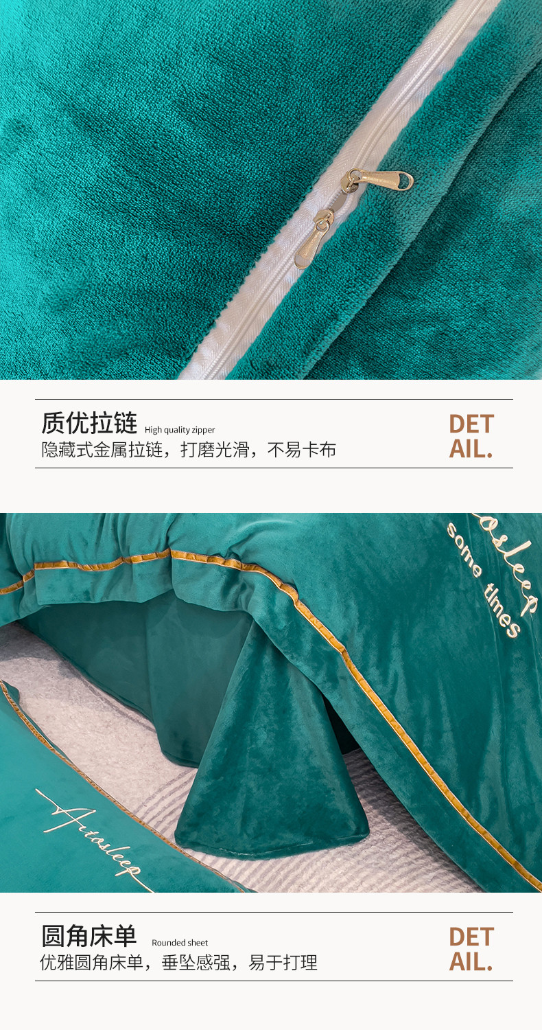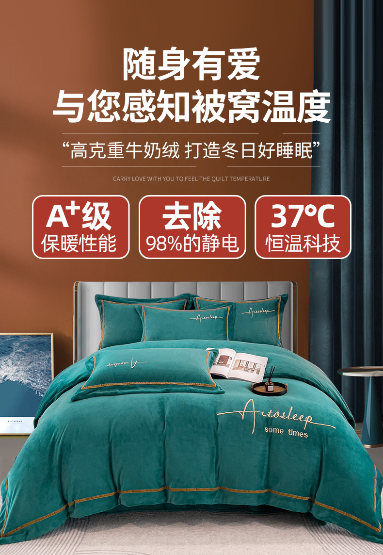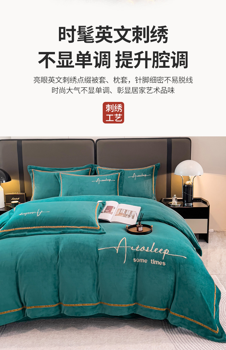 当前位置: 91家纺网 > 商品网购 > 床品套件 > 四件套 > 牛奶绒四件套 > 露梦 2025新款高克重牛奶绒刺绣四件套-赫本 赫本-祖母绿