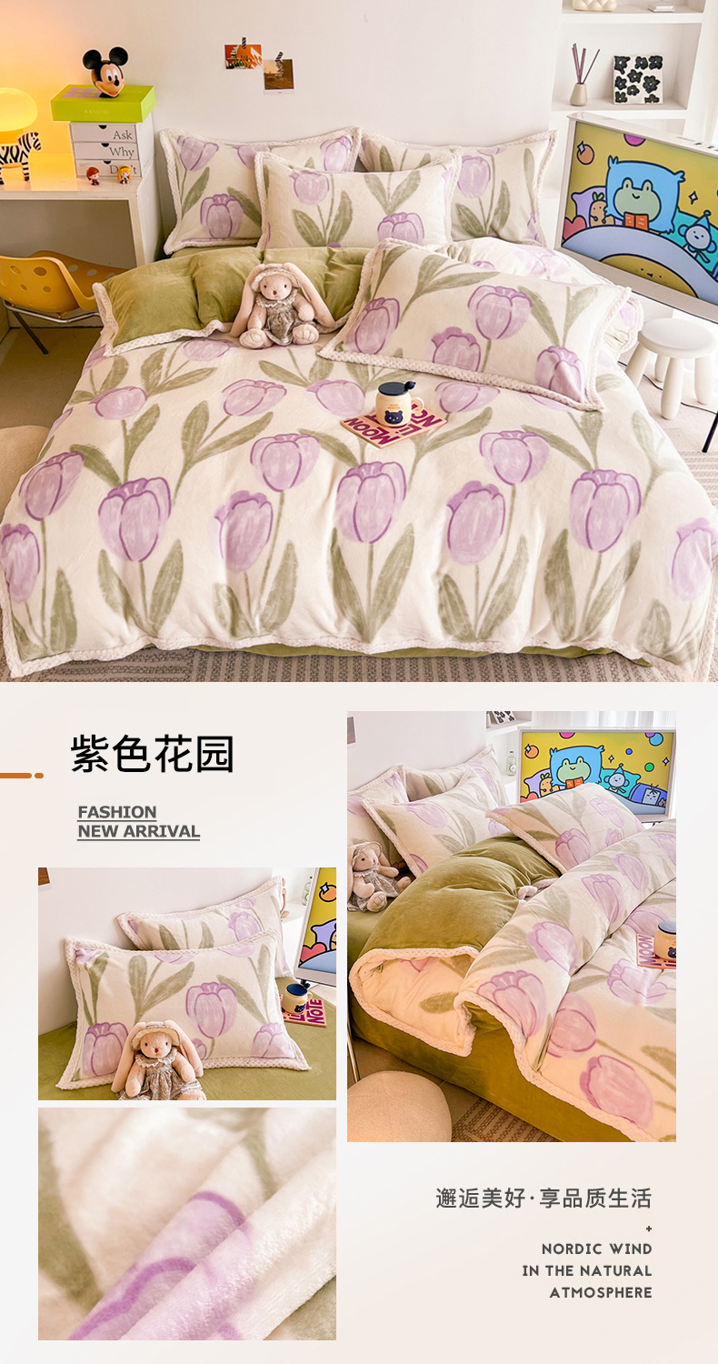 商品名称:川悦生活 2023新款牛奶绒200克宽边四件套 宽边紫色花园