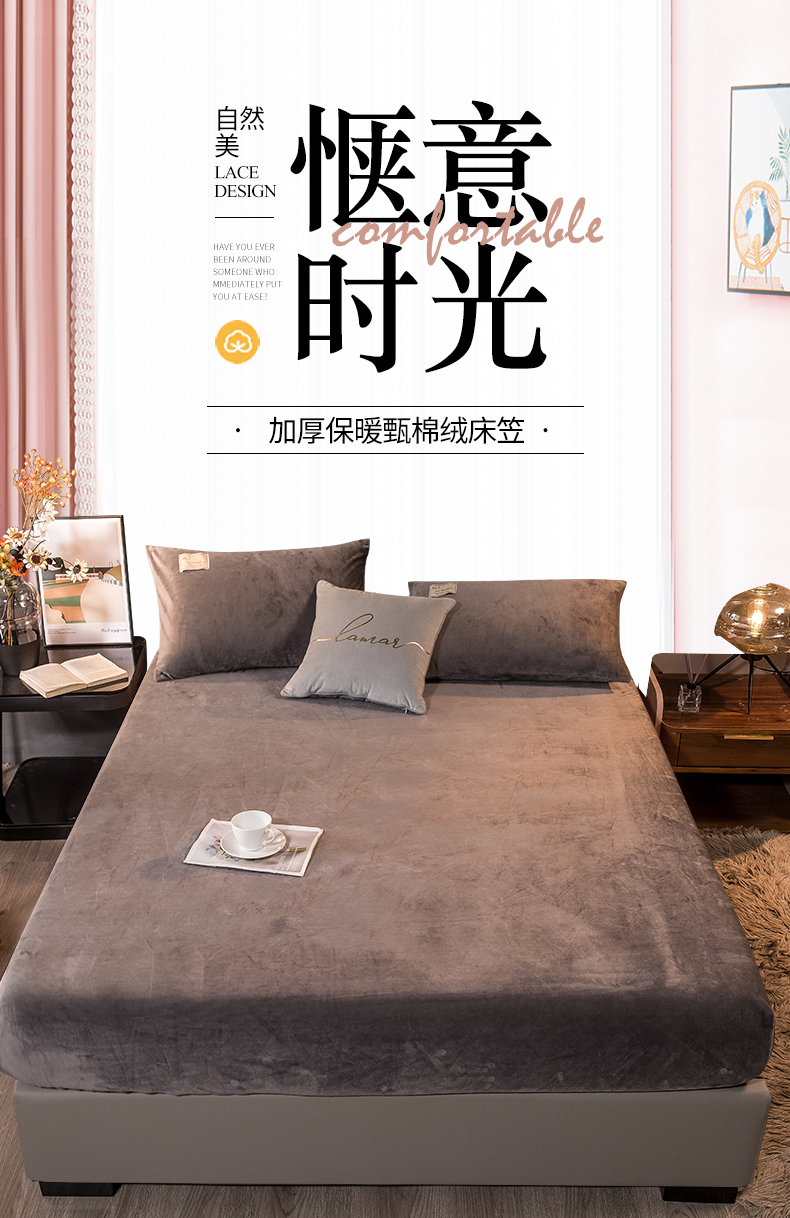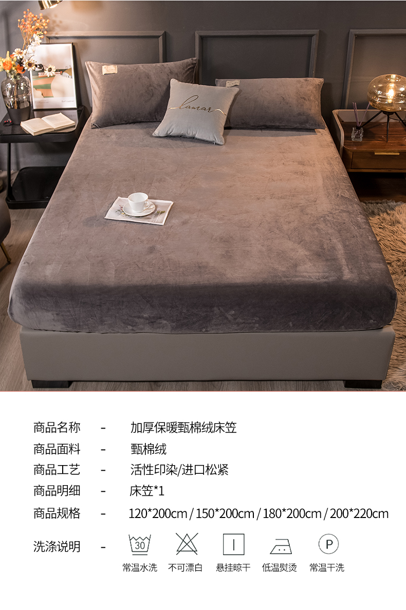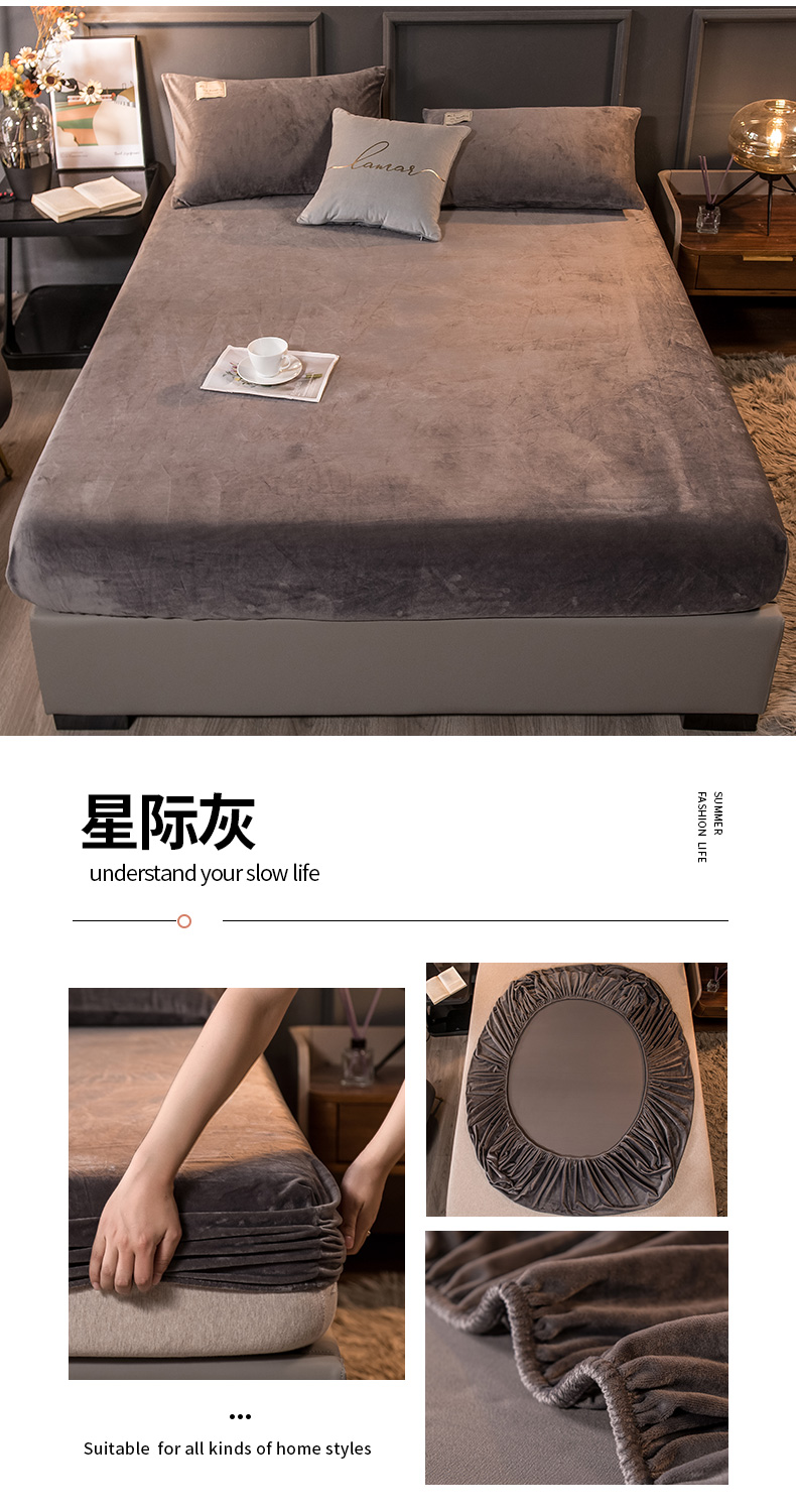 商品名称:全季家居 2023新款高克重水晶绒床笠 星际灰