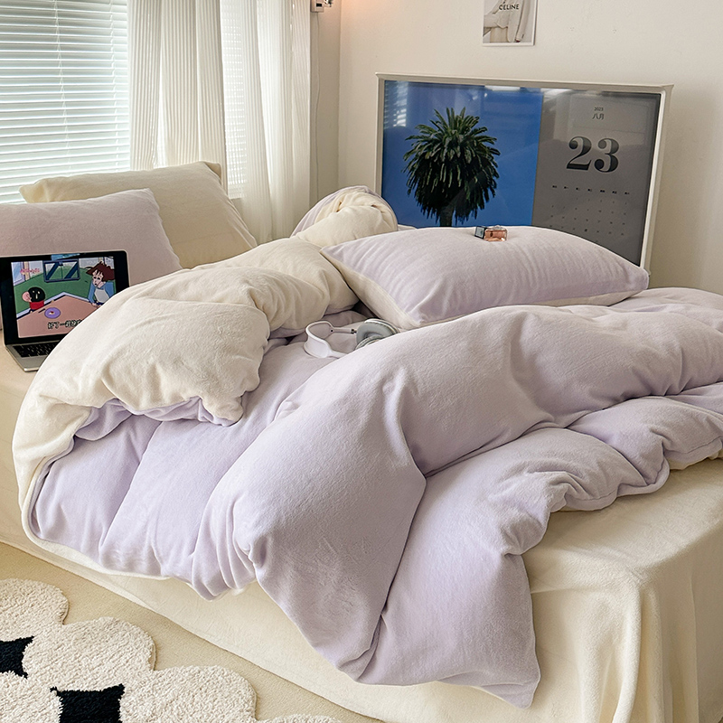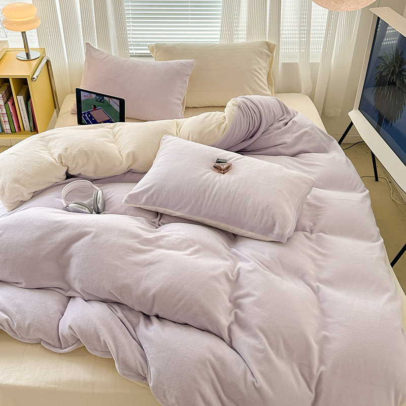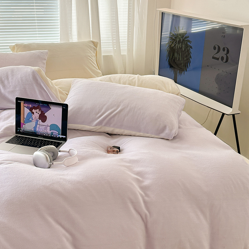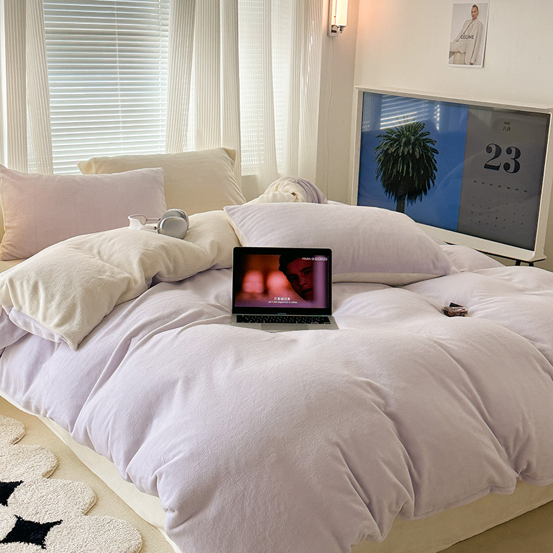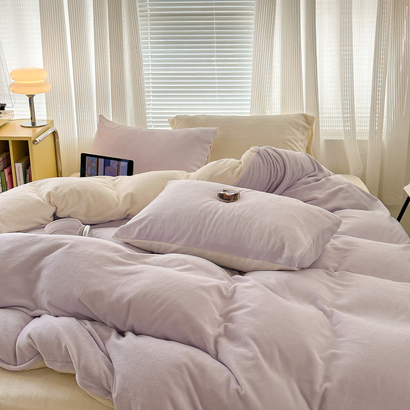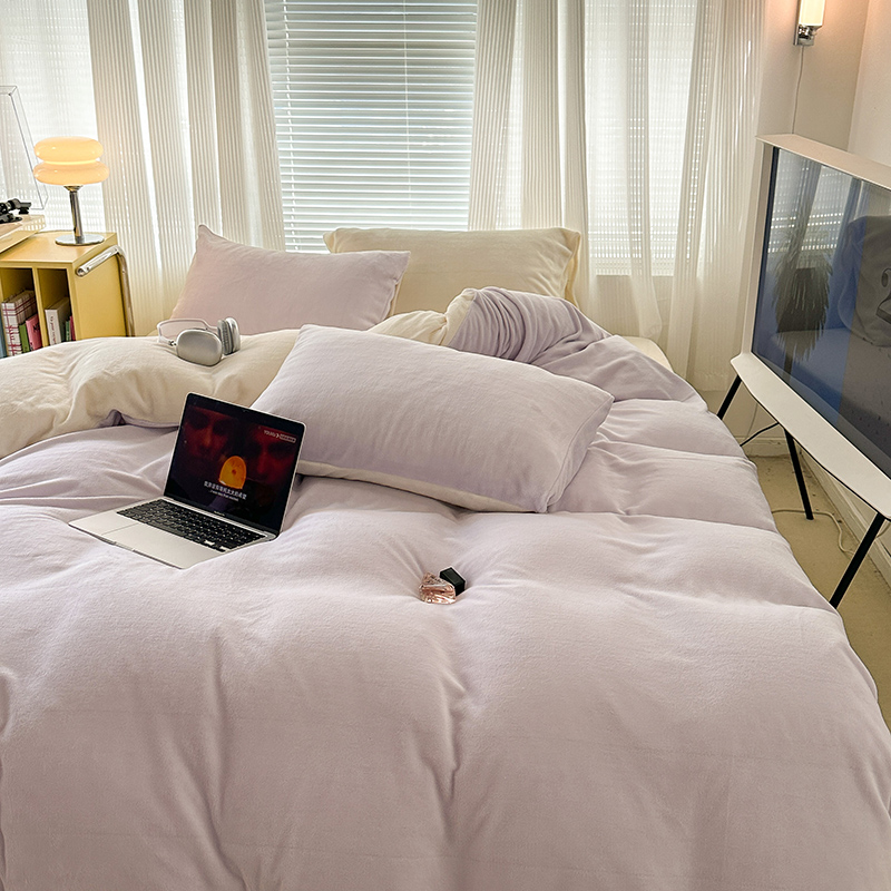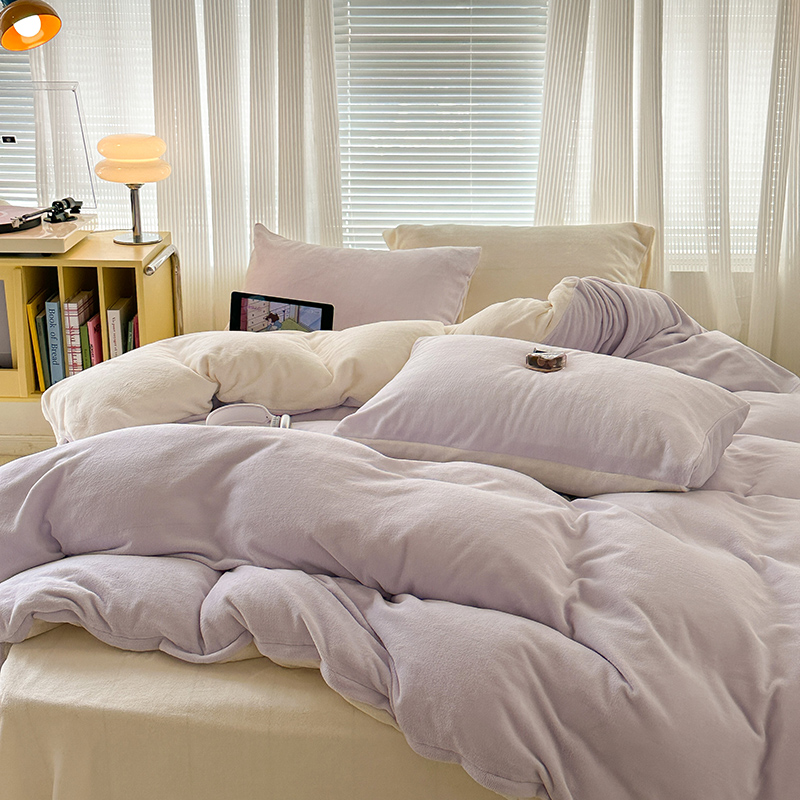 昔可家纺 2023新款奶油纯色系列双拼牛奶绒四件套 芋泥波波
