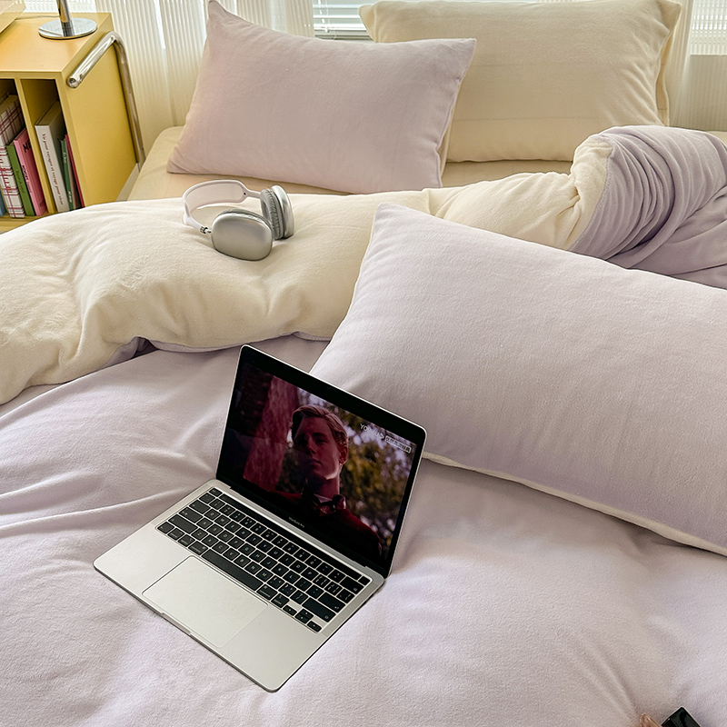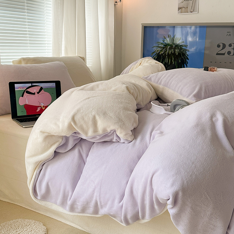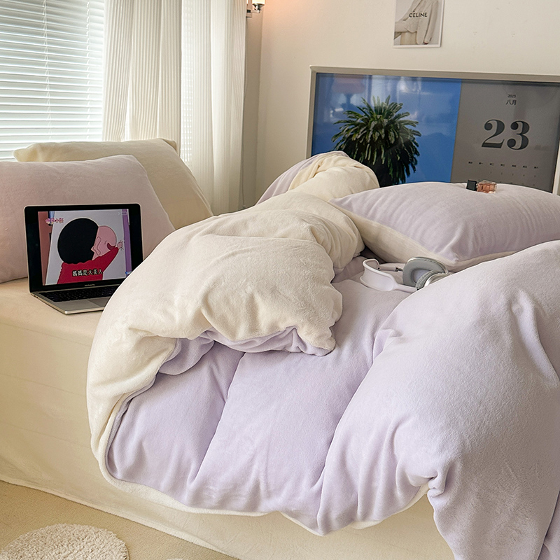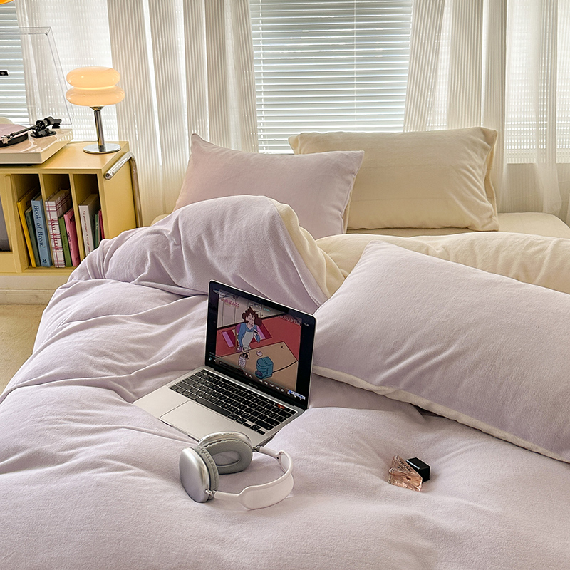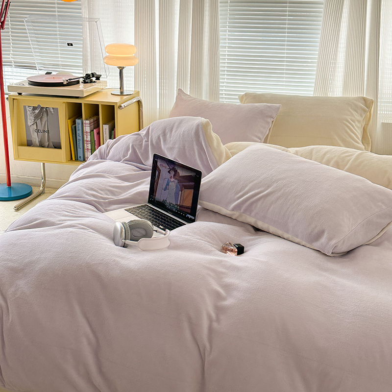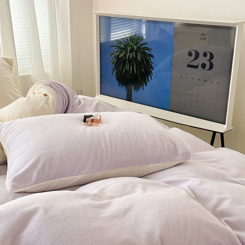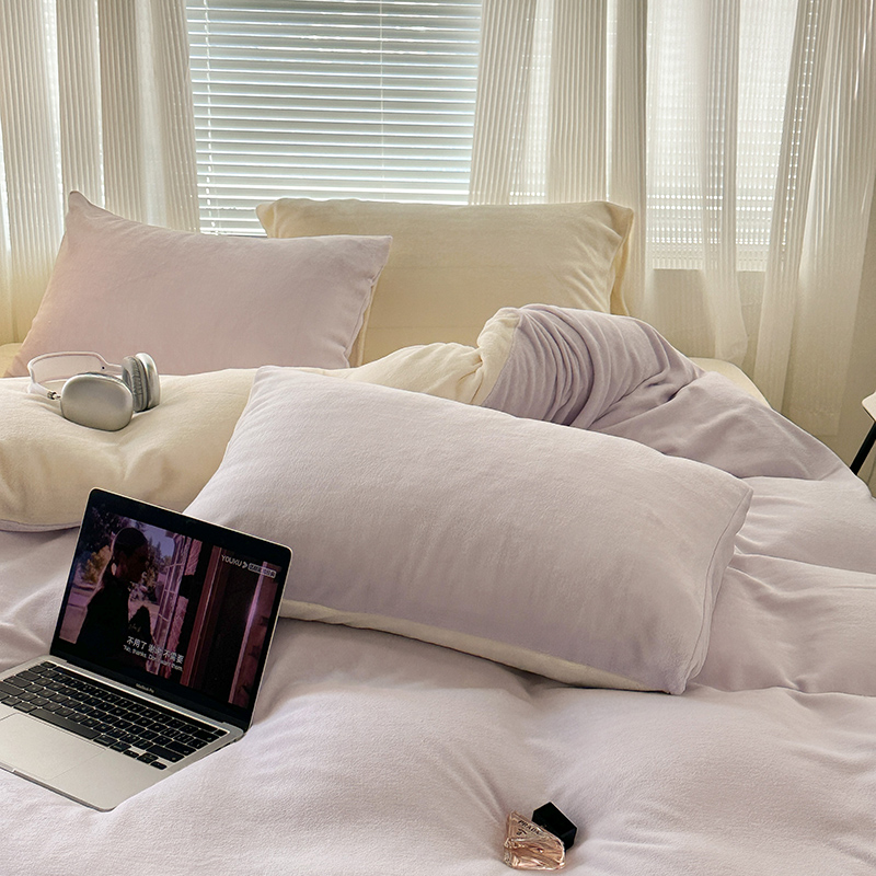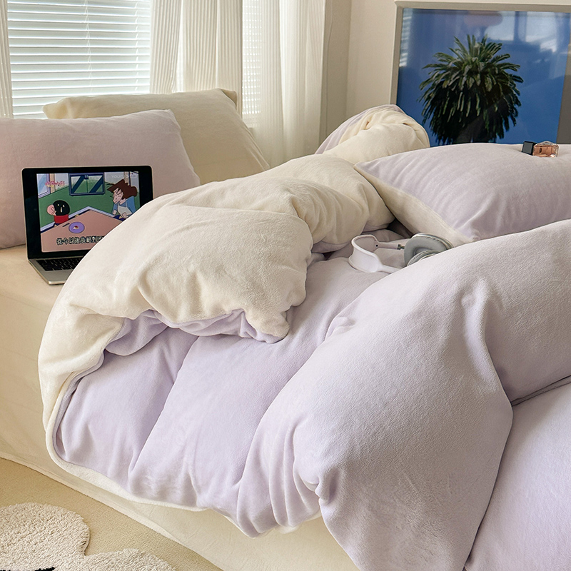 昔可家纺 2023新款奶油纯色系列双拼牛奶绒四件套 芋泥波波